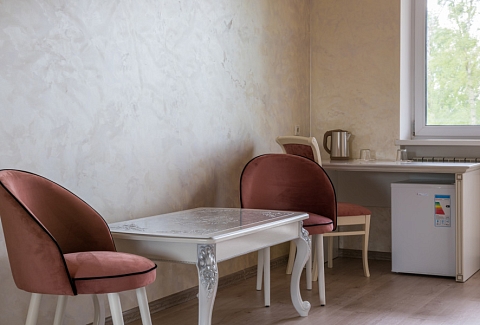 Просторные номера, оснащенные современной мебелью и необходимой бытовой техникой. Спокойствие берёзовой рощи обеспечивает идеальный микроклимат для отдыха и восстановления сил после насыщенного дня.В гостинице для каждого гостя индивидуальные решения при выборе номера, готовы организовать пребывание с максимальным удобством и минимальными затратами времени.