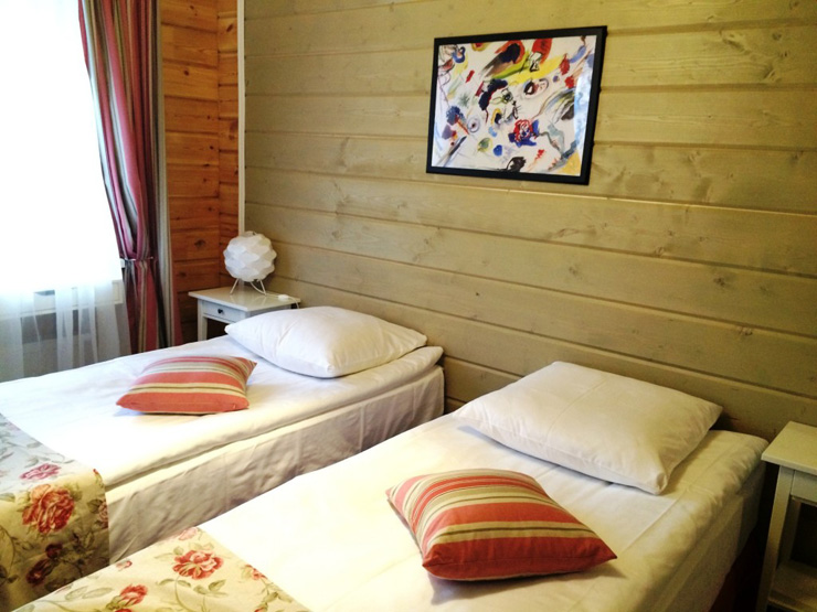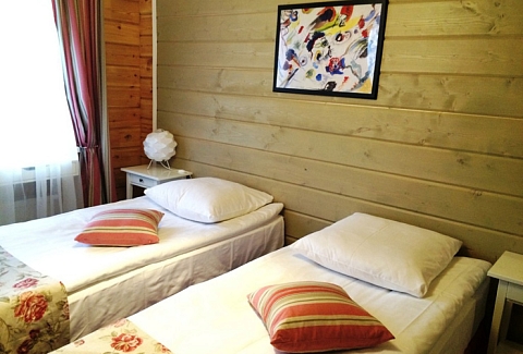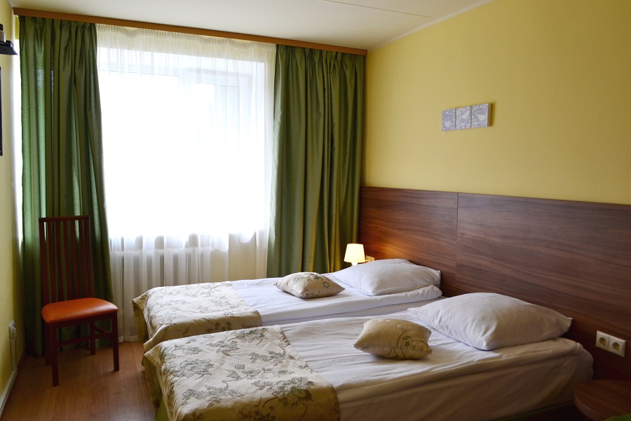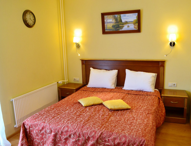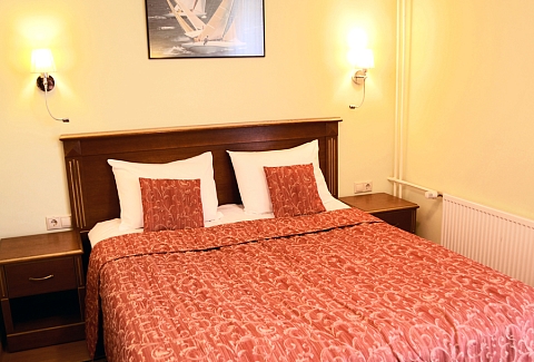 В номере: вешалка, зеркало, кровати односпальные /одна двуспальная кровать, прикроватные тумбочки, стол, стулья, шкаф, мини-холодильник, набор посуды, телевизор, телефон