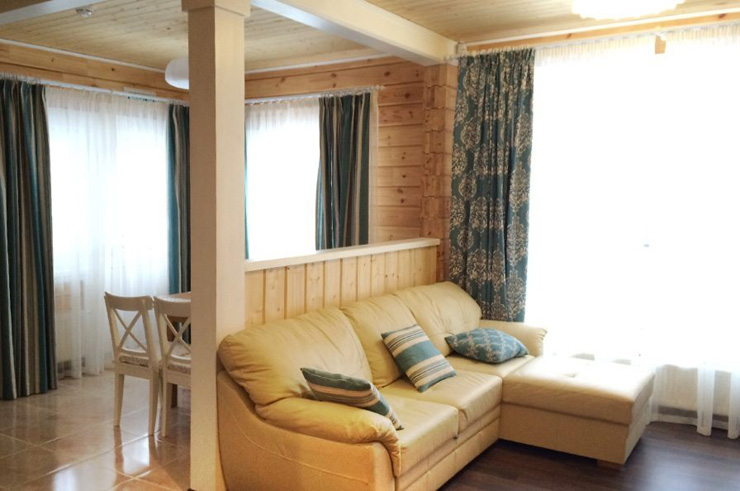 В номере: вешалка, зеркало, кресла, кровати односпальные, кровать двуспальная, набор мягкой мебели, прикроватные тумбочки, стол, столик журнальный, стулья, шкаф, гладильная доска, микроволновая печь, набор посуды, плита электрическая, посудомоечная машина, стиральная машина, телевизор, телефон, утюг, холодильник, электрочайник