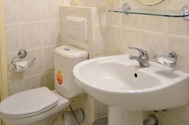 Санузел: с душем, тапочки, туалетные принадлежности, фен