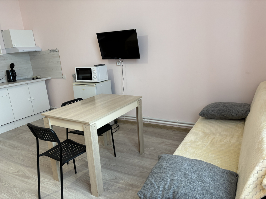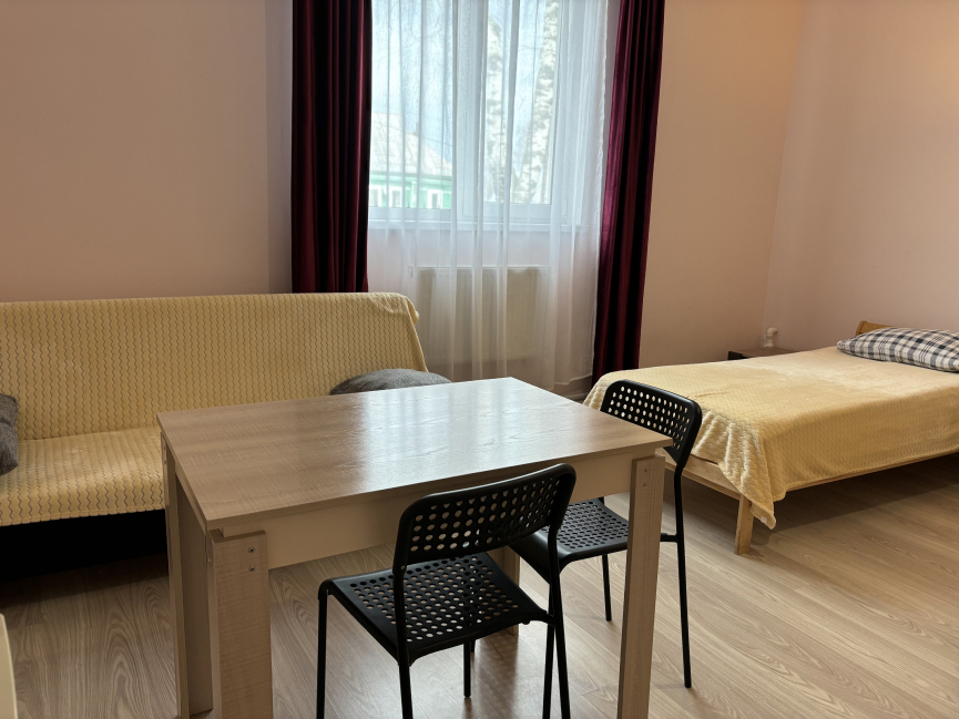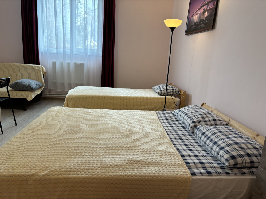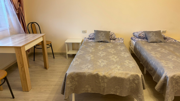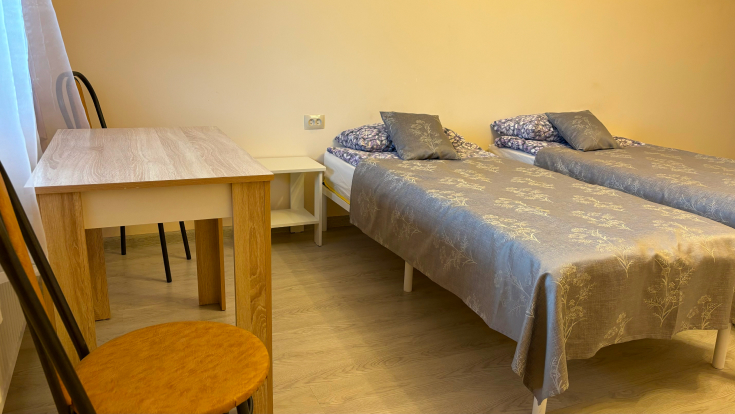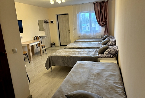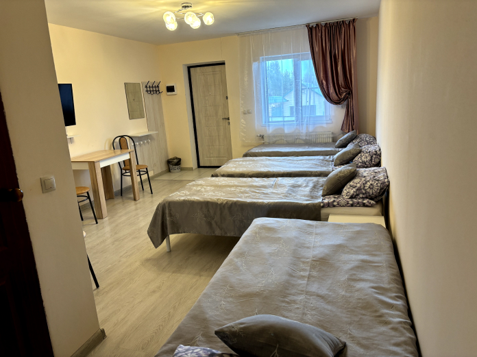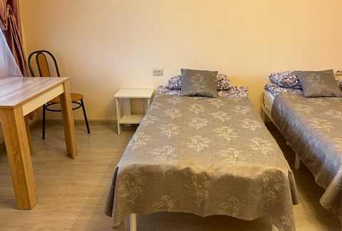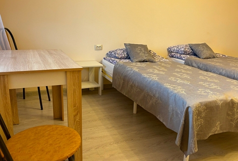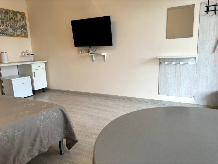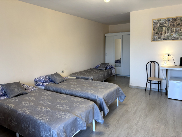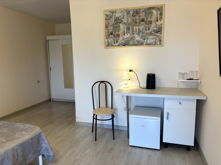 В номере: зеркало, кровати односпальные, стол, стулья, шкаф, мини-холодильник, телевизор ЖК, электрочайник