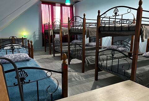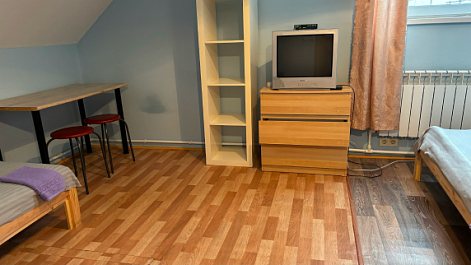 В номере: зеркало, кровать двухъярусная, стол, стулья, шкаф, стиральная машина, сушилка для белья, телевизор