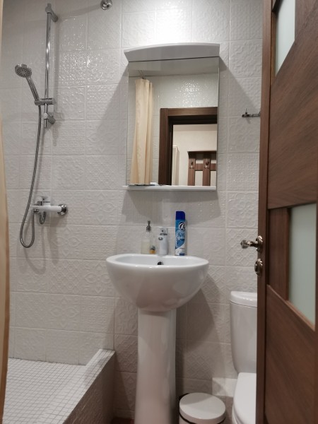 Санузел: с душем, тапочки, туалетные принадлежности