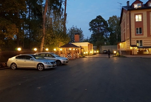 На личном транспорте по Егорьевскому ш., в городе Томилино съезд направо на ул. Потехина, двигаться 120 м, слева через шлагбаум въезд в отель.