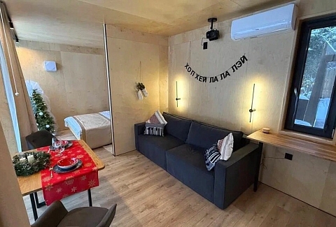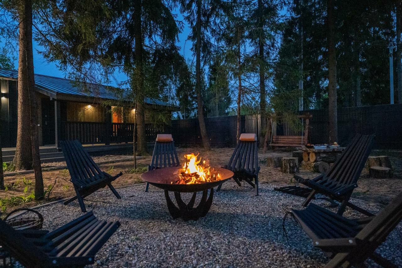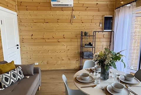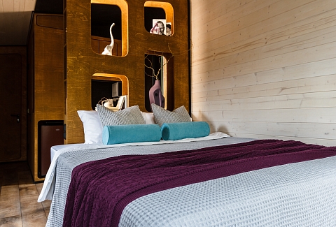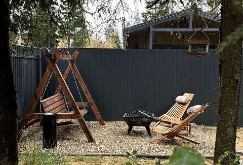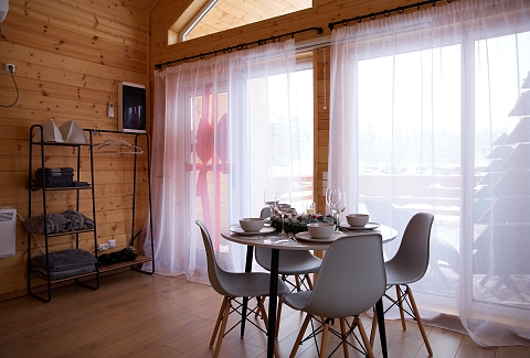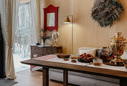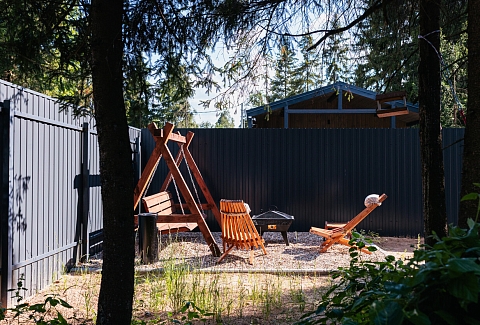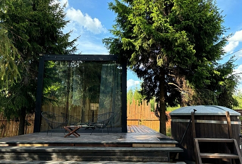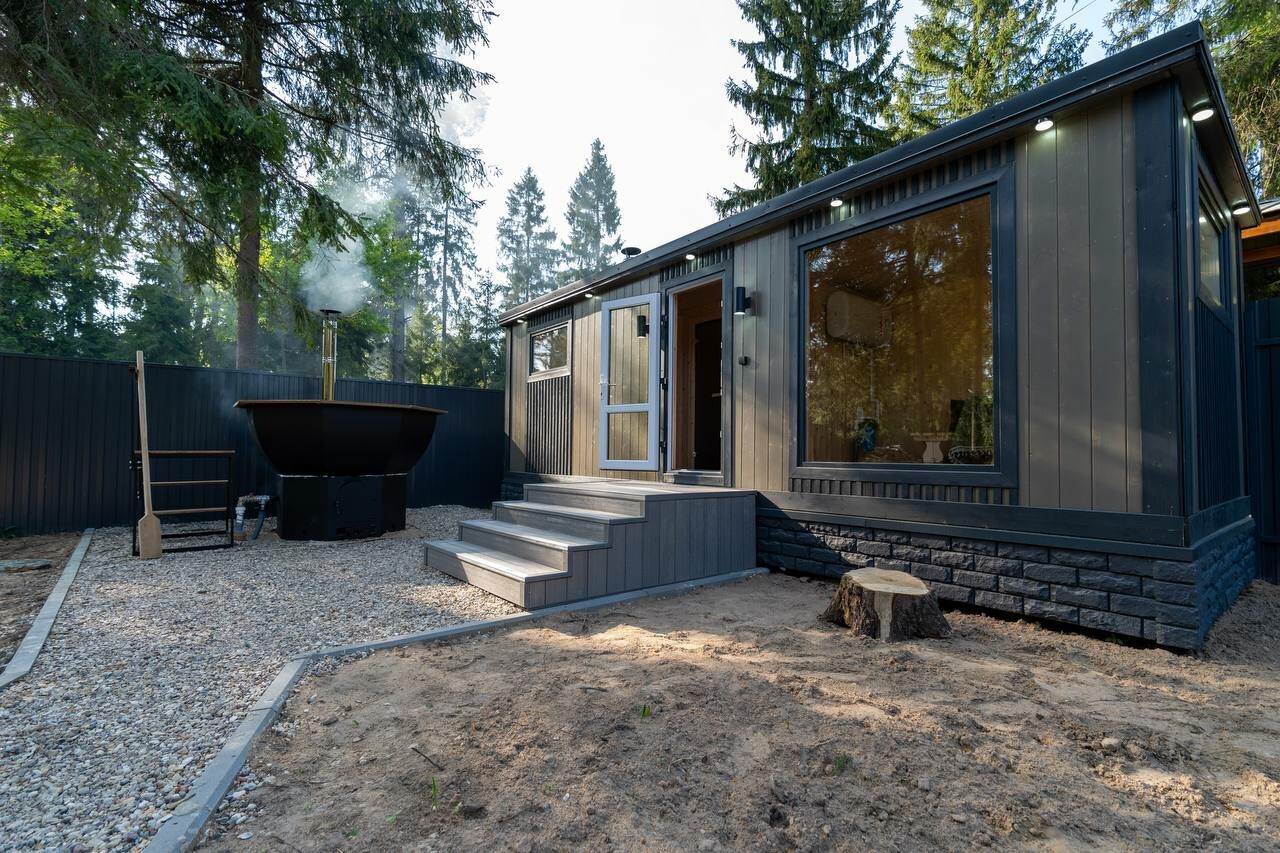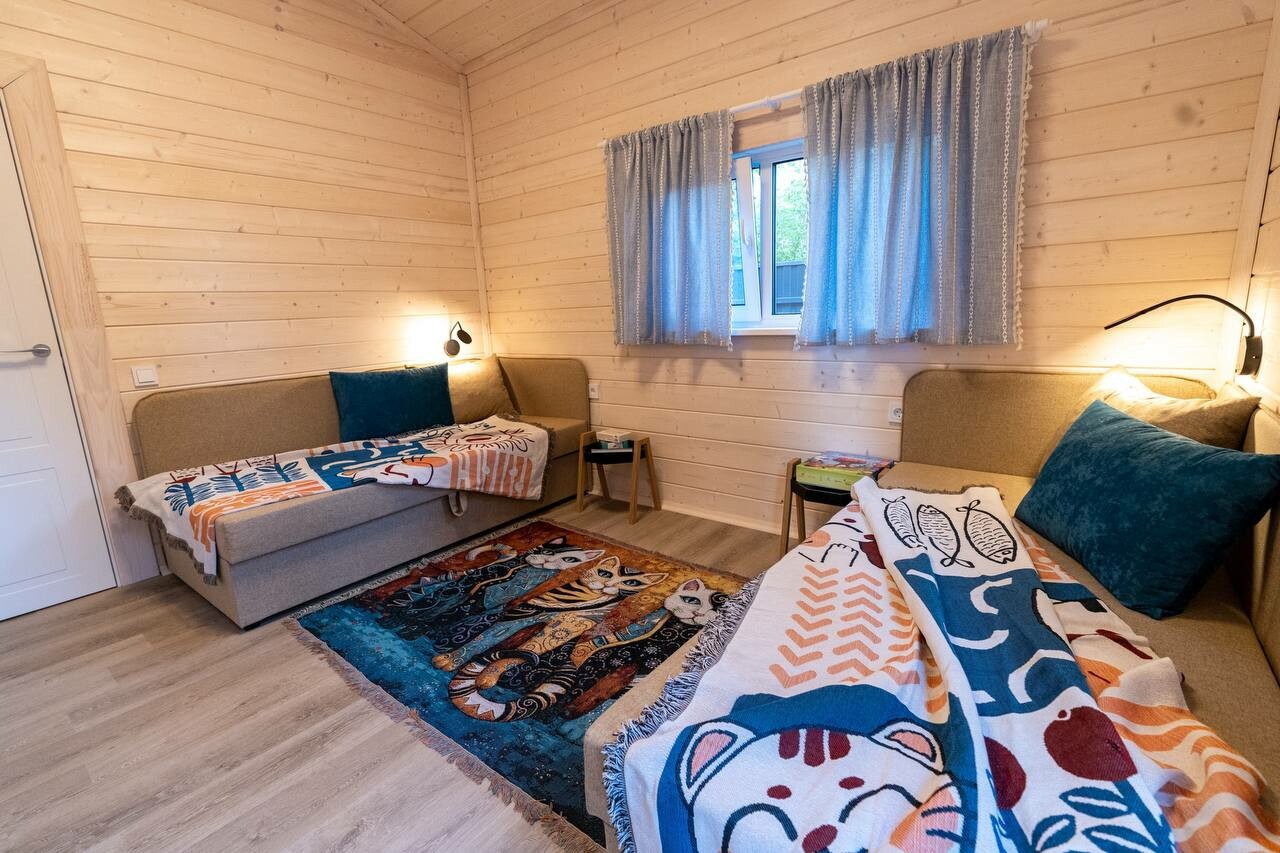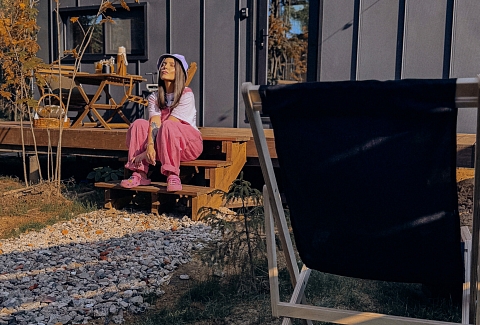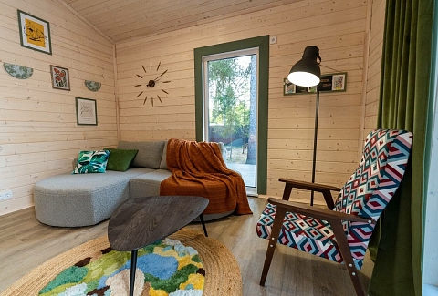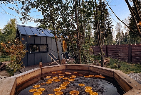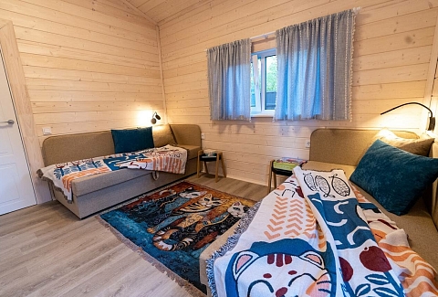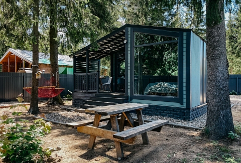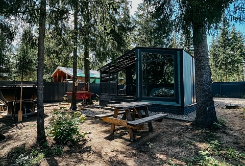 Внутри самой территории обустроены зоны для отдыха и детская площадка.На территории расположено десять отдельных дизайнерских домов, каждый из которых имеет собственную приватную территорию. Внутреннее пространство оснащено всем необходимым для комфортного пребывания: спальные места с качественным постельным бельём, мини-кухня с посудой, санузел с феном, полотенцами и средствами гигиены. К приятным деталям относятся быстрый Wi-Fi, телевизор с возможностью просмотра фильмов через проектор, а также настольные игры и виниловые пластинки для уютных вечеров. На улице у каждого дома обустроены мангальная и костровая зоны, а главная особенность — собственный горячий чан, позволяющий расслабиться на свежем воздухе в любое время года.Для гостей доступны разнообразные услуги, включая топку чана, парение в русской бане с опытным банщиком, аренду велосипедов и сапов, а также организацию полноценного питания. На территории предусмотрена костровая зона, где можно греться у огня с пледом и чашкой чая, наслаждаясь тишиной и звездным небом. Глэмпинг радушно принимает гостей с домашними питомцами — для четвероногих друзей подготовлен небольшой приветственный набор.Это место создано для тех, кто ищет гармонию с природой, не отказываясь от комфорта. Оно идеально подходит для романтического уединения пар, спокойного семейного отдыха с детьми, работы в удаленном формате среди тишины, а также для проведения камерных праздников в атмосферном пространстве. Каждый сезон приносит новые краски, а сменяющиеся фотозоны добавляют ярких впечатлений и поводов для красивых кадров.