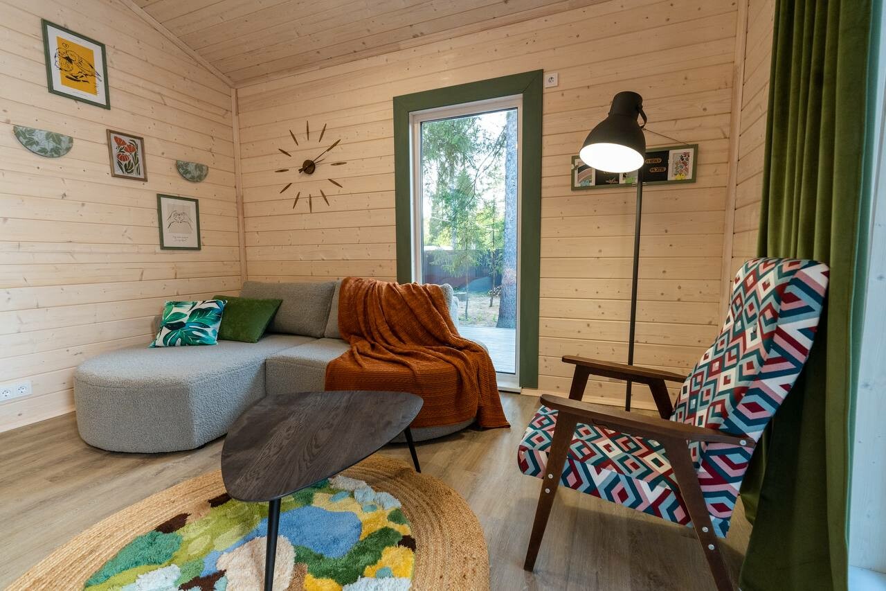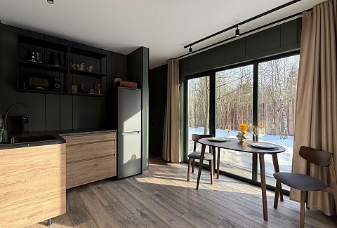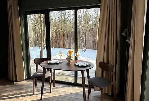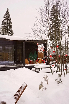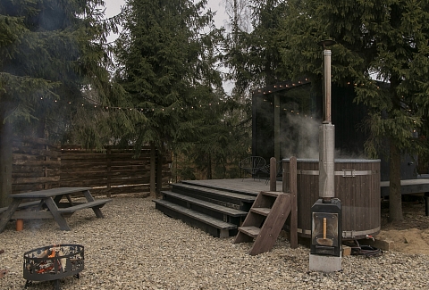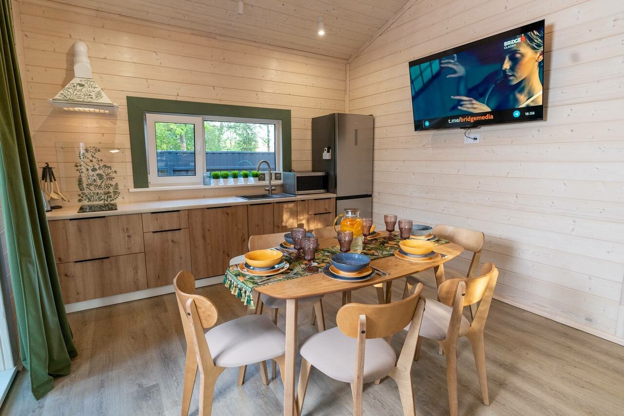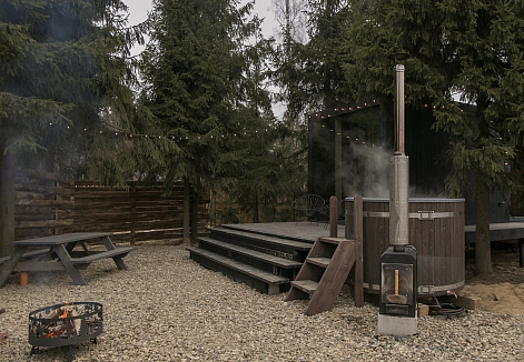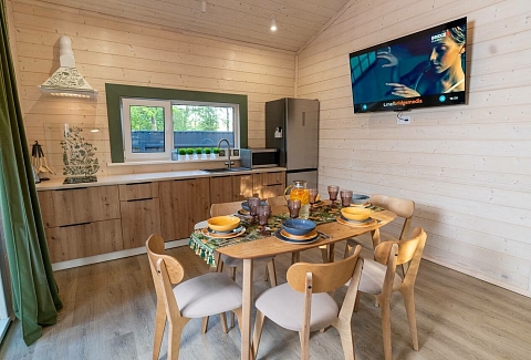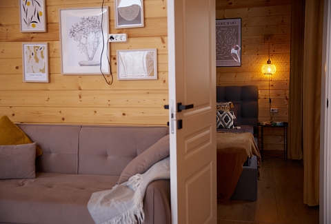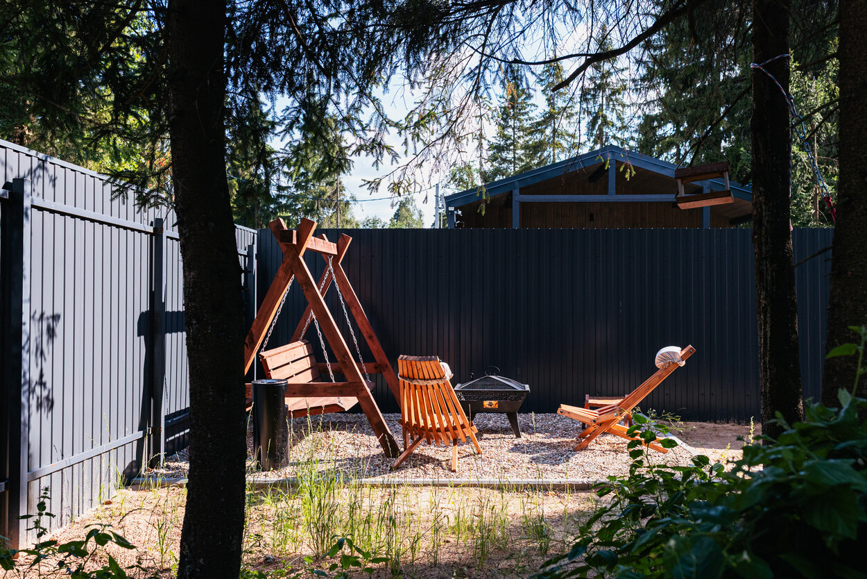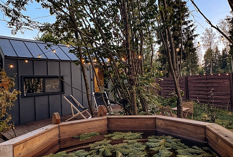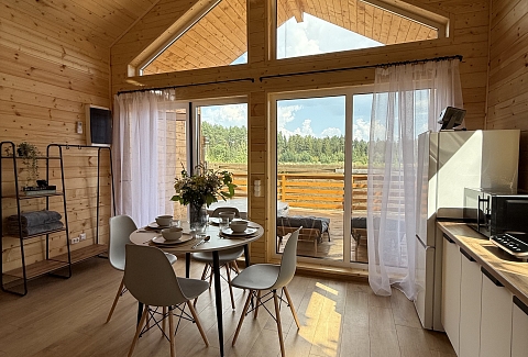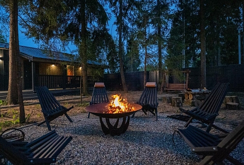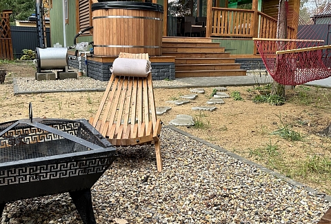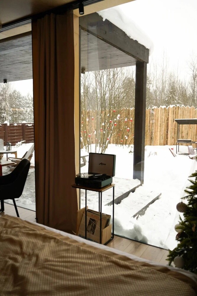 Внутри самой территории обустроены зоны для отдыха и детская площадка.На территории расположено десять отдельных дизайнерских домов, каждый из которых имеет собственную приватную территорию. Внутреннее пространство оснащено всем необходимым для комфортного пребывания: спальные места с качественным постельным бельём, мини-кухня с посудой, санузел с феном, полотенцами и средствами гигиены. К приятным деталям относятся быстрый Wi-Fi, телевизор с возможностью просмотра фильмов через проектор, а также настольные игры и виниловые пластинки для уютных вечеров. На улице у каждого дома обустроены мангальная и костровая зоны, а главная особенность — собственный горячий чан, позволяющий расслабиться на свежем воздухе в любое время года.Для гостей доступны разнообразные услуги, включая топку чана, парение в русской бане с опытным банщиком, аренду велосипедов и сапов, а также организацию полноценного питания. На территории предусмотрена костровая зона, где можно греться у огня с пледом и чашкой чая, наслаждаясь тишиной и звездным небом. Глэмпинг радушно принимает гостей с домашними питомцами — для четвероногих друзей подготовлен небольшой приветственный набор.Это место создано для тех, кто ищет гармонию с природой, не отказываясь от комфорта. Оно идеально подходит для романтического уединения пар, спокойного семейного отдыха с детьми, работы в удаленном формате среди тишины, а также для проведения камерных праздников в атмосферном пространстве. Каждый сезон приносит новые краски, а сменяющиеся фотозоны добавляют ярких впечатлений и поводов для красивых кадров.