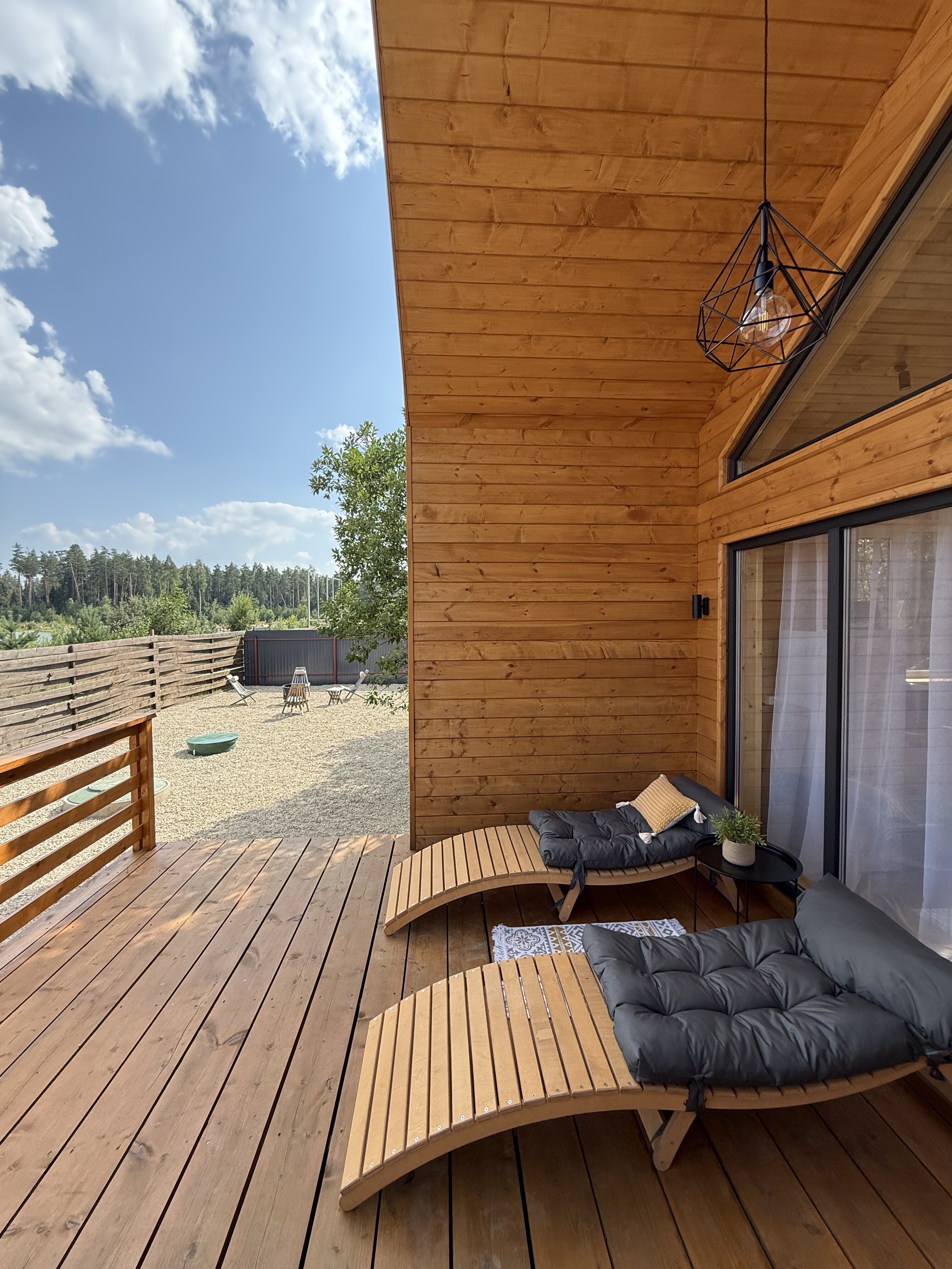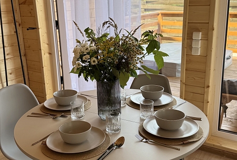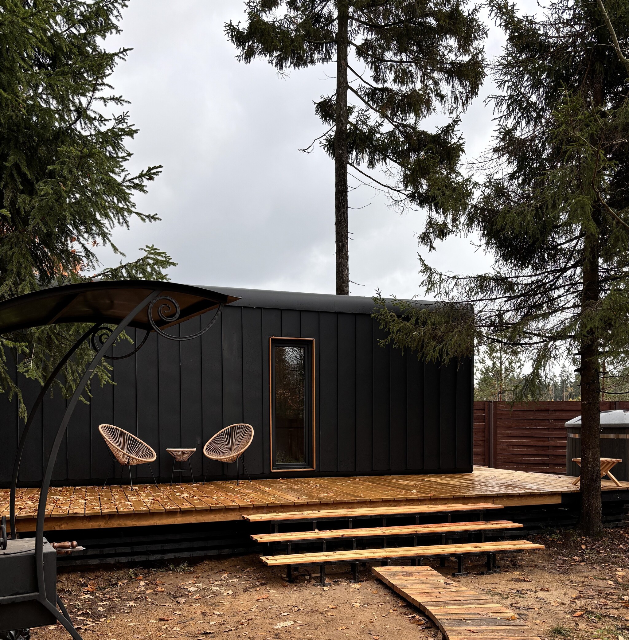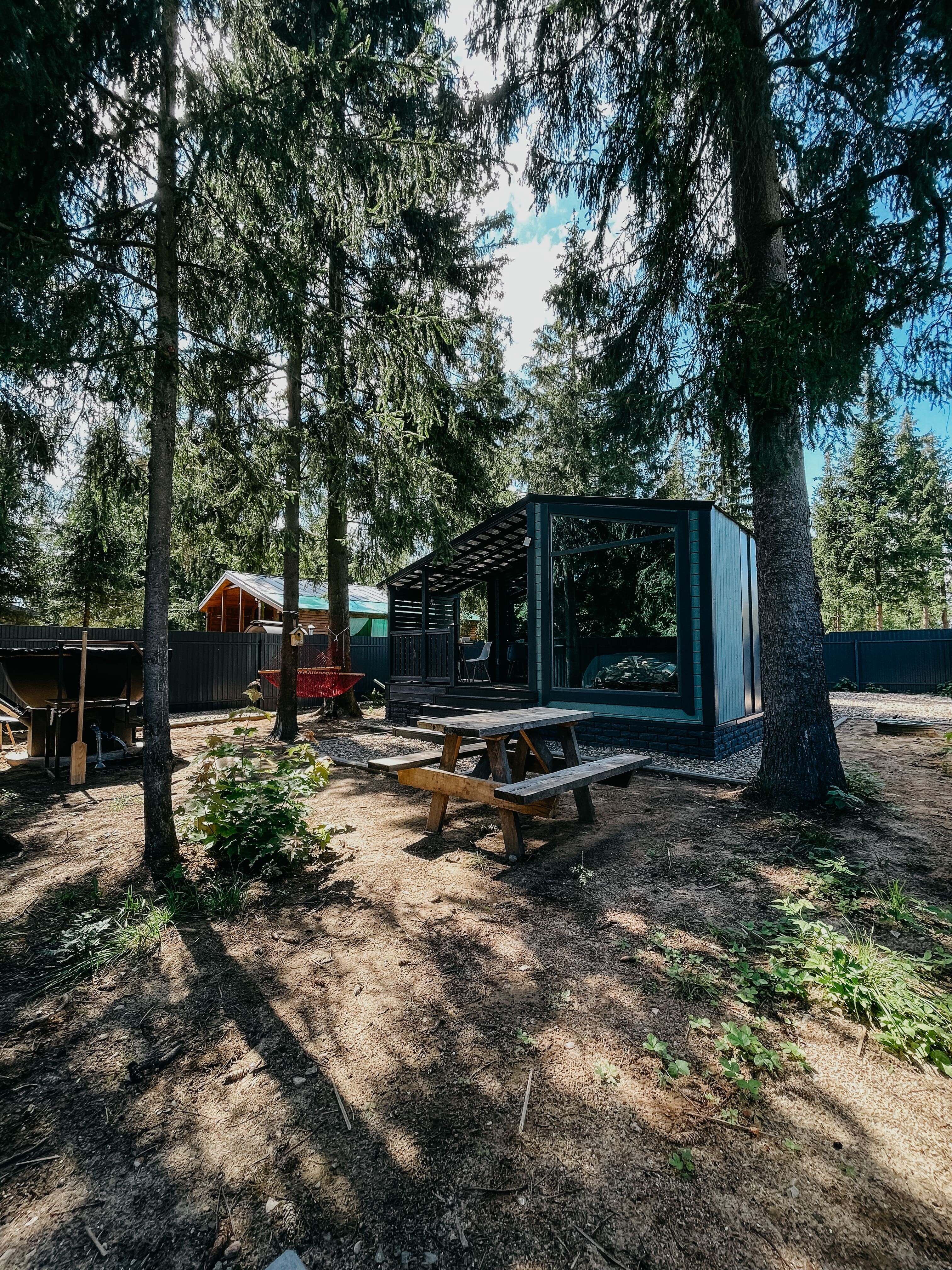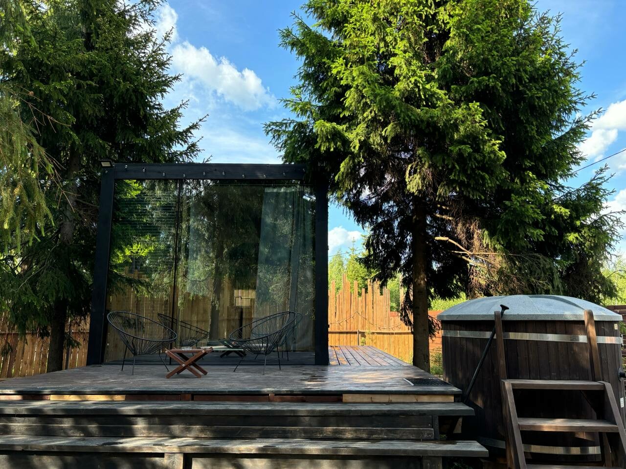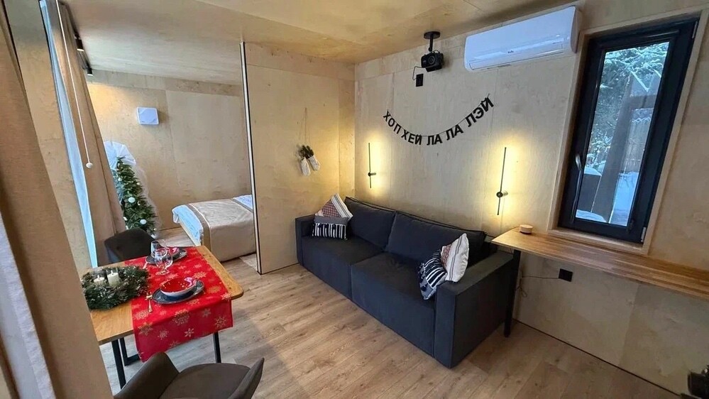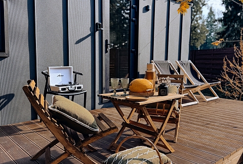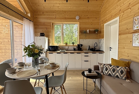 Внутри самой территории обустроены зоны для отдыха и детская площадка.На территории расположено десять отдельных дизайнерских домов, каждый из которых имеет собственную приватную территорию. Внутреннее пространство оснащено всем необходимым для комфортного пребывания: спальные места с качественным постельным бельём, мини-кухня с посудой, санузел с феном, полотенцами и средствами гигиены. К приятным деталям относятся быстрый Wi-Fi, телевизор с возможностью просмотра фильмов через проектор, а также настольные игры и виниловые пластинки для уютных вечеров. На улице у каждого дома обустроены мангальная и костровая зоны, а главная особенность — собственный горячий чан, позволяющий расслабиться на свежем воздухе в любое время года.Для гостей доступны разнообразные услуги, включая топку чана, парение в русской бане с опытным банщиком, аренду велосипедов и сапов, а также организацию полноценного питания. На территории предусмотрена костровая зона, где можно греться у огня с пледом и чашкой чая, наслаждаясь тишиной и звездным небом. Глэмпинг радушно принимает гостей с домашними питомцами — для четвероногих друзей подготовлен небольшой приветственный набор.Это место создано для тех, кто ищет гармонию с природой, не отказываясь от комфорта. Оно идеально подходит для романтического уединения пар, спокойного семейного отдыха с детьми, работы в удаленном формате среди тишины, а также для проведения камерных праздников в атмосферном пространстве. Каждый сезон приносит новые краски, а сменяющиеся фотозоны добавляют ярких впечатлений и поводов для красивых кадров.
