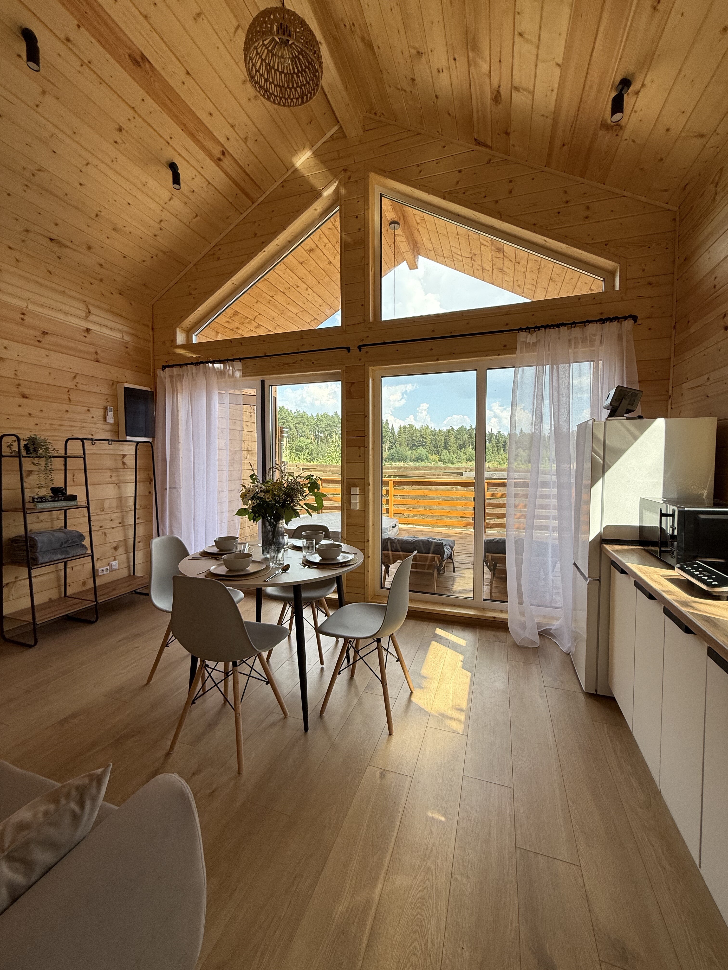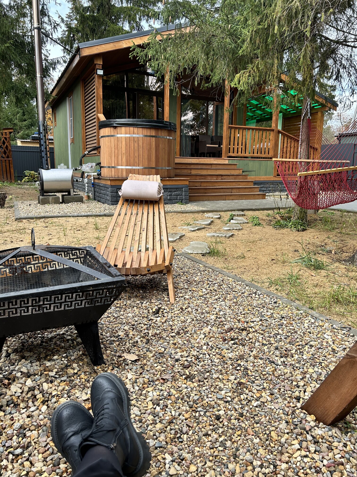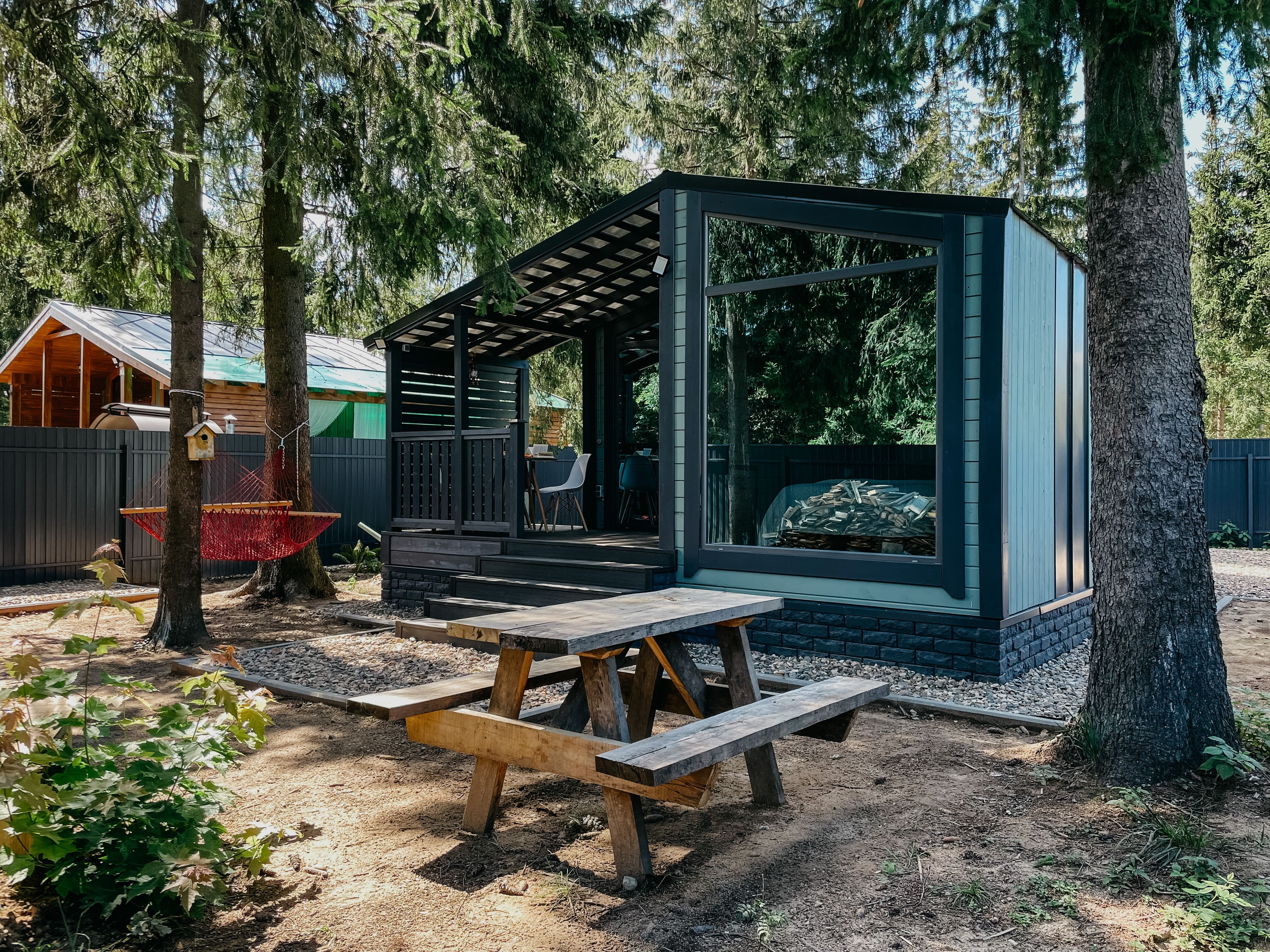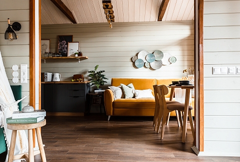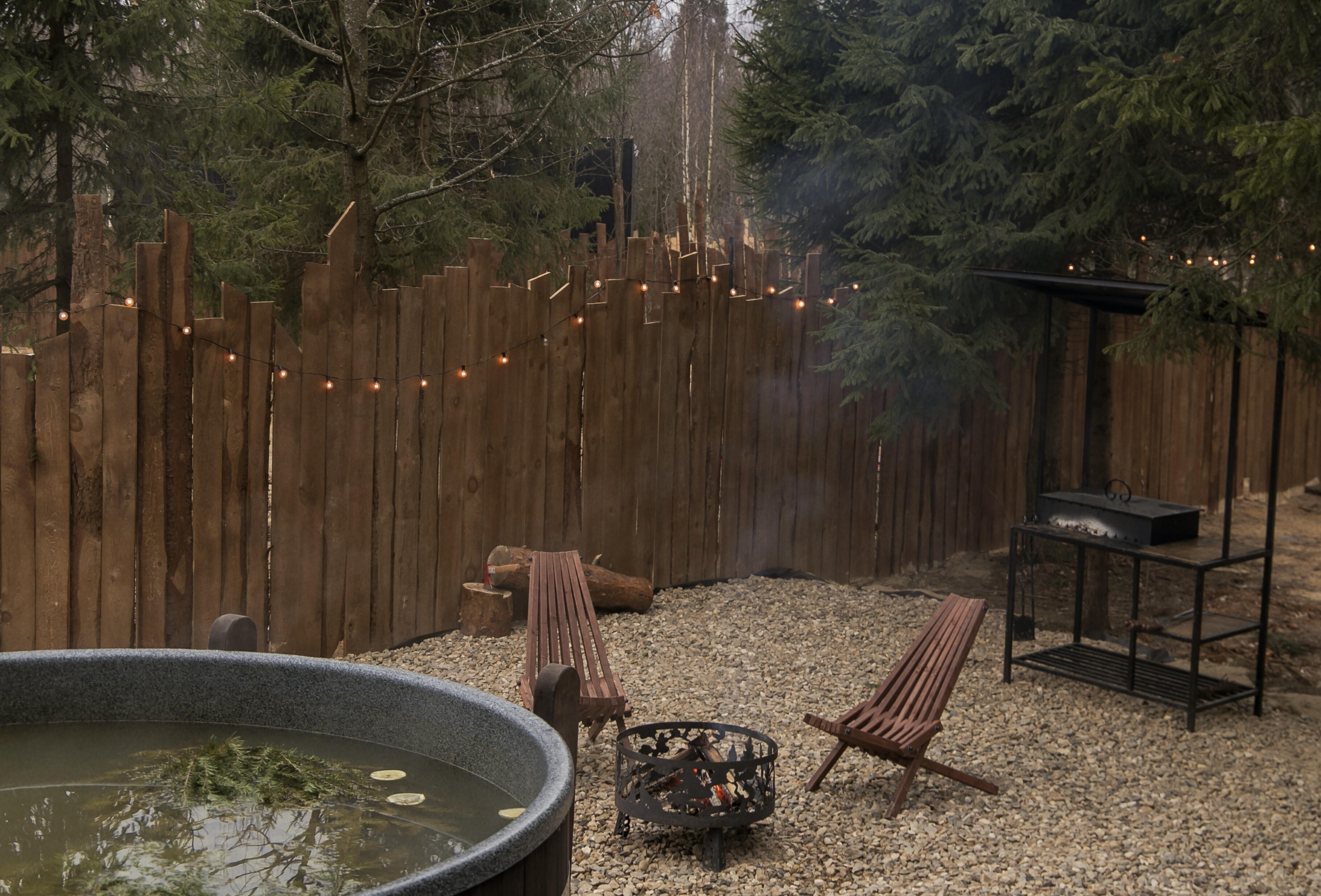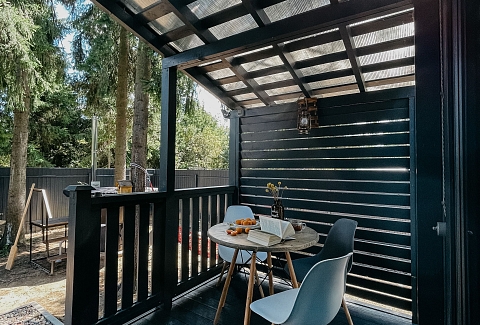 Внутри самой территории обустроены зоны для отдыха и детская площадка.На территории расположено десять отдельных дизайнерских домов, каждый из которых имеет собственную приватную территорию. Внутреннее пространство оснащено всем необходимым для комфортного пребывания: спальные места с качественным постельным бельём, мини-кухня с посудой, санузел с феном, полотенцами и средствами гигиены. К приятным деталям относятся быстрый Wi-Fi, телевизор с возможностью просмотра фильмов через проектор, а также настольные игры и виниловые пластинки для уютных вечеров. На улице у каждого дома обустроены мангальная и костровая зоны, а главная особенность — собственный горячий чан, позволяющий расслабиться на свежем воздухе в любое время года.Для гостей доступны разнообразные услуги, включая топку чана, парение в русской бане с опытным банщиком, аренду велосипедов и сапов, а также организацию полноценного питания. На территории предусмотрена костровая зона, где можно греться у огня с пледом и чашкой чая, наслаждаясь тишиной и звездным небом. Глэмпинг радушно принимает гостей с домашними питомцами — для четвероногих друзей подготовлен небольшой приветственный набор.Это место создано для тех, кто ищет гармонию с природой, не отказываясь от комфорта. Оно идеально подходит для романтического уединения пар, спокойного семейного отдыха с детьми, работы в удаленном формате среди тишины, а также для проведения камерных праздников в атмосферном пространстве. Каждый сезон приносит новые краски, а сменяющиеся фотозоны добавляют ярких впечатлений и поводов для красивых кадров.