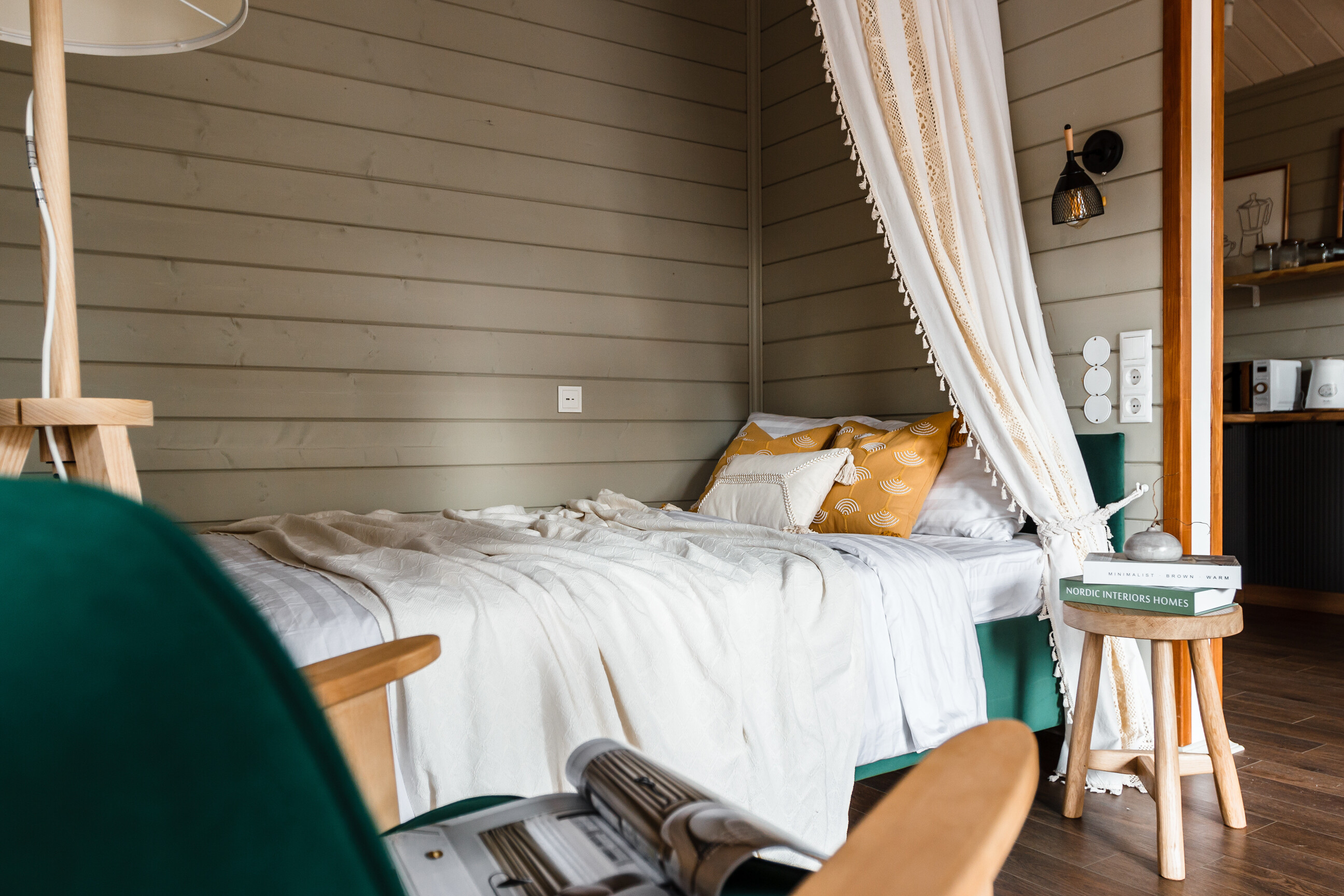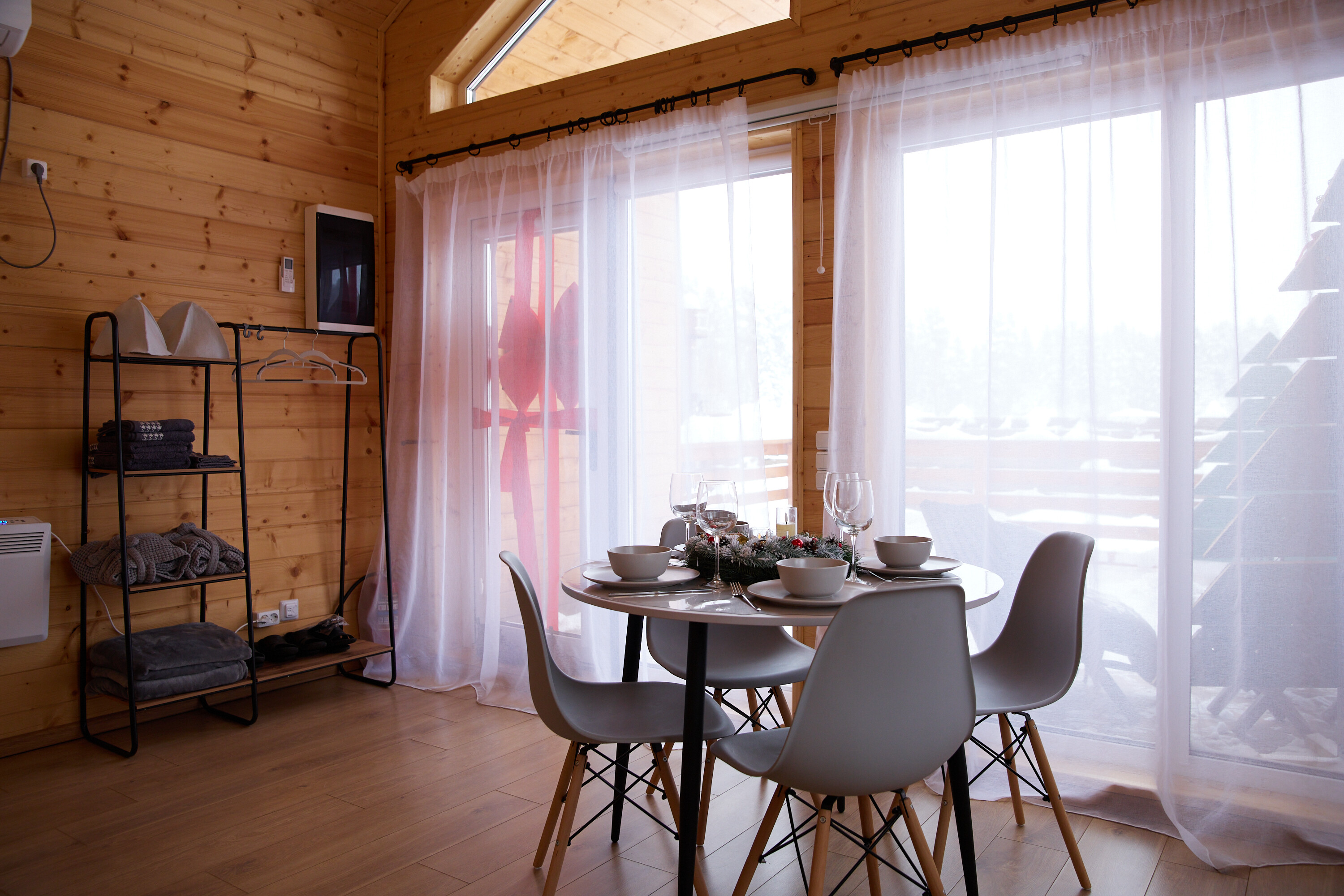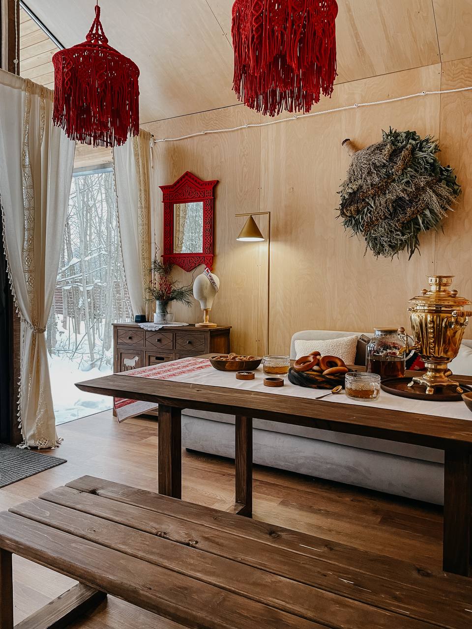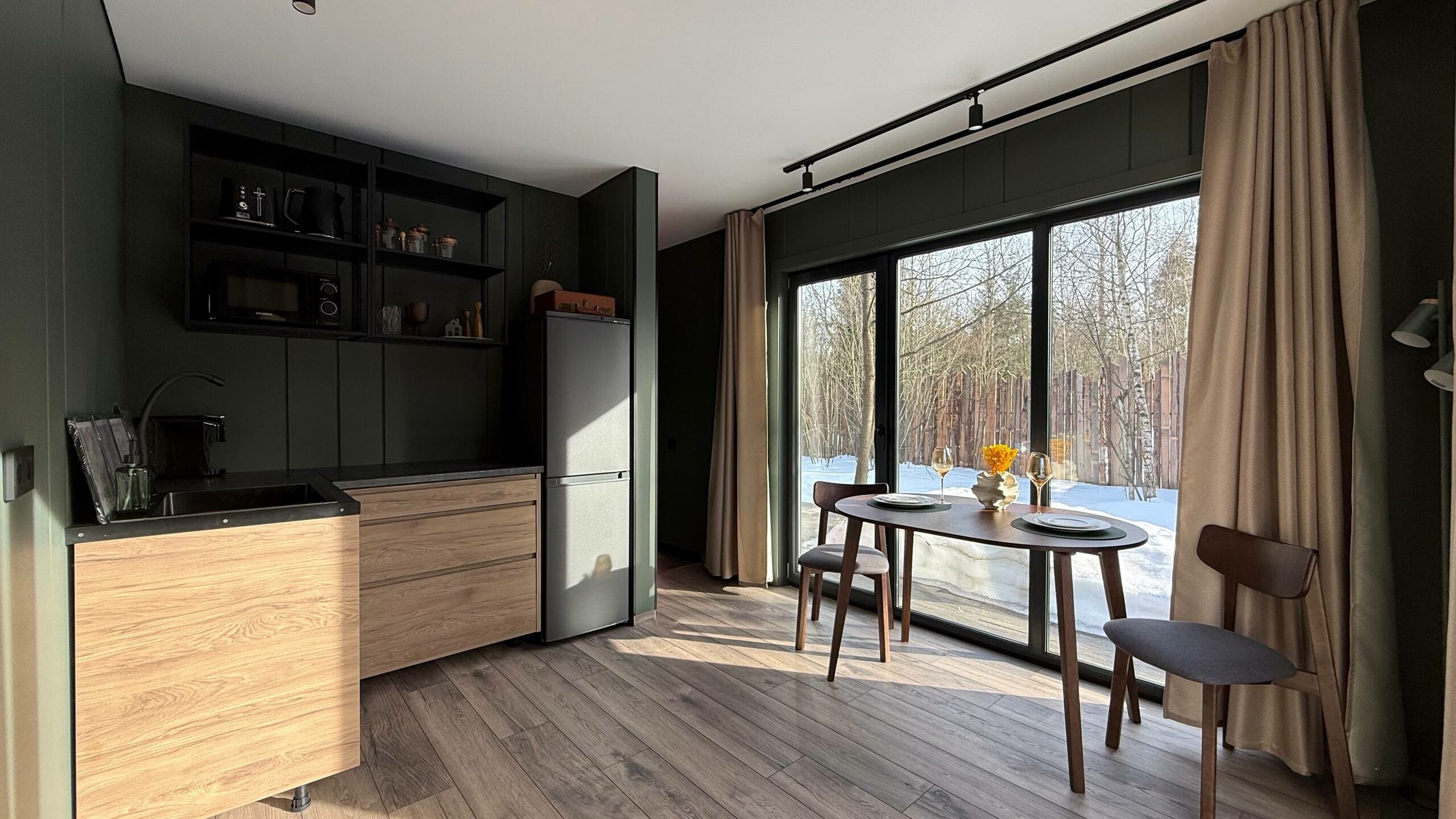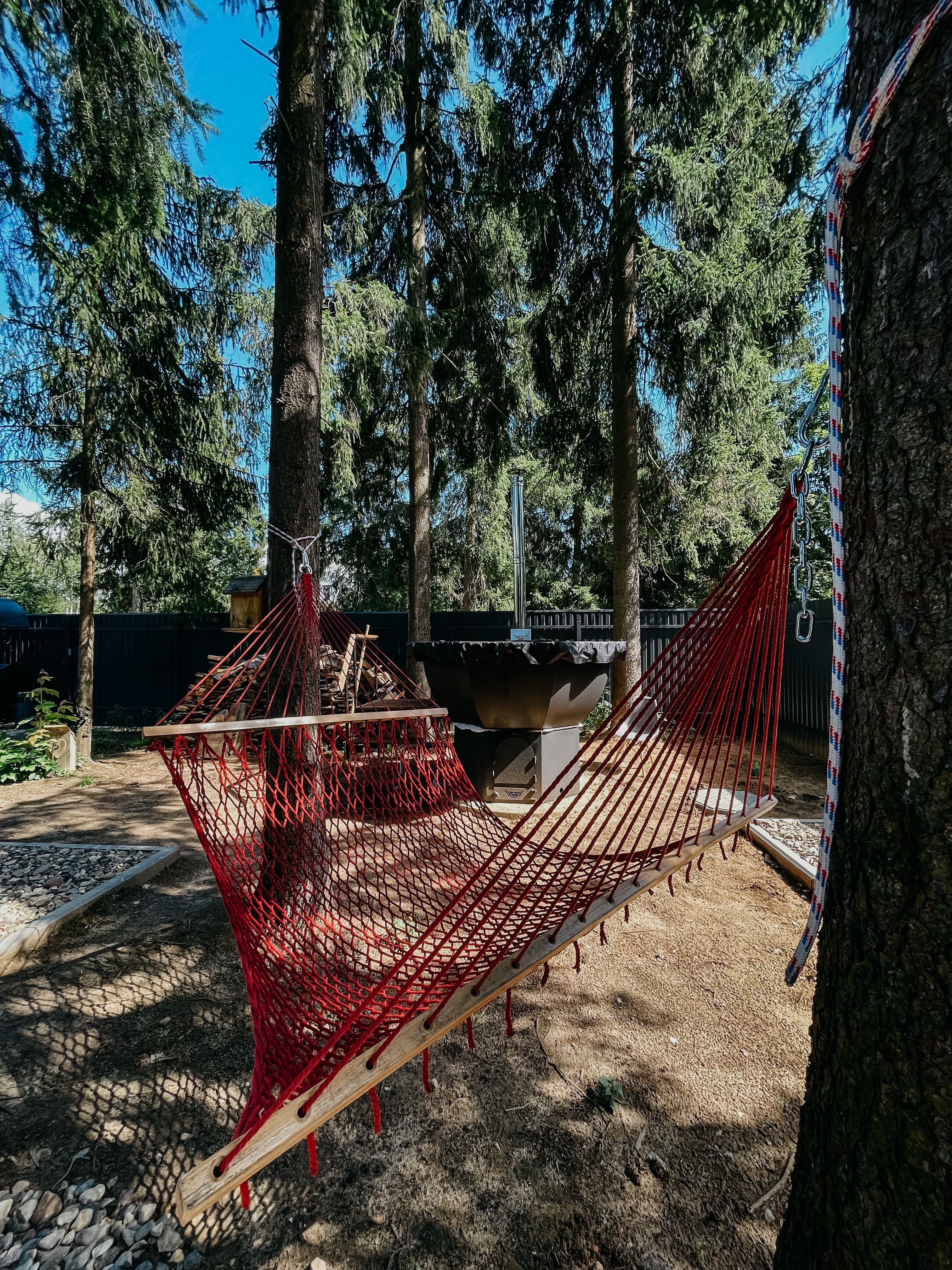 Внутри самой территории обустроены зоны для отдыха и детская площадка.На территории расположено десять отдельных дизайнерских домов, каждый из которых имеет собственную приватную территорию. Внутреннее пространство оснащено всем необходимым для комфортного пребывания: спальные места с качественным постельным бельём, мини-кухня с посудой, санузел с феном, полотенцами и средствами гигиены. К приятным деталям относятся быстрый Wi-Fi, телевизор с возможностью просмотра фильмов через проектор, а также настольные игры и виниловые пластинки для уютных вечеров. На улице у каждого дома обустроены мангальная и костровая зоны, а главная особенность — собственный горячий чан, позволяющий расслабиться на свежем воздухе в любое время года.Для гостей доступны разнообразные услуги, включая топку чана, парение в русской бане с опытным банщиком, аренду велосипедов и сапов, а также организацию полноценного питания. На территории предусмотрена костровая зона, где можно греться у огня с пледом и чашкой чая, наслаждаясь тишиной и звездным небом. Глэмпинг радушно принимает гостей с домашними питомцами — для четвероногих друзей подготовлен небольшой приветственный набор.Это место создано для тех, кто ищет гармонию с природой, не отказываясь от комфорта. Оно идеально подходит для романтического уединения пар, спокойного семейного отдыха с детьми, работы в удаленном формате среди тишины, а также для проведения камерных праздников в атмосферном пространстве. Каждый сезон приносит новые краски, а сменяющиеся фотозоны добавляют ярких впечатлений и поводов для красивых кадров.