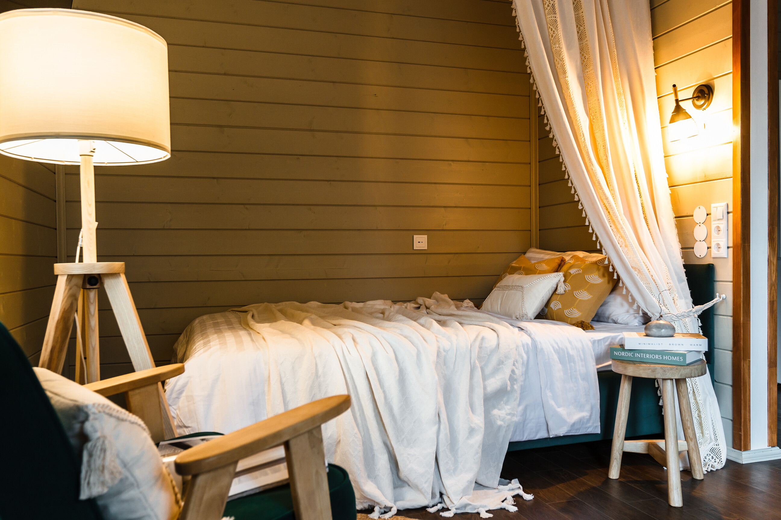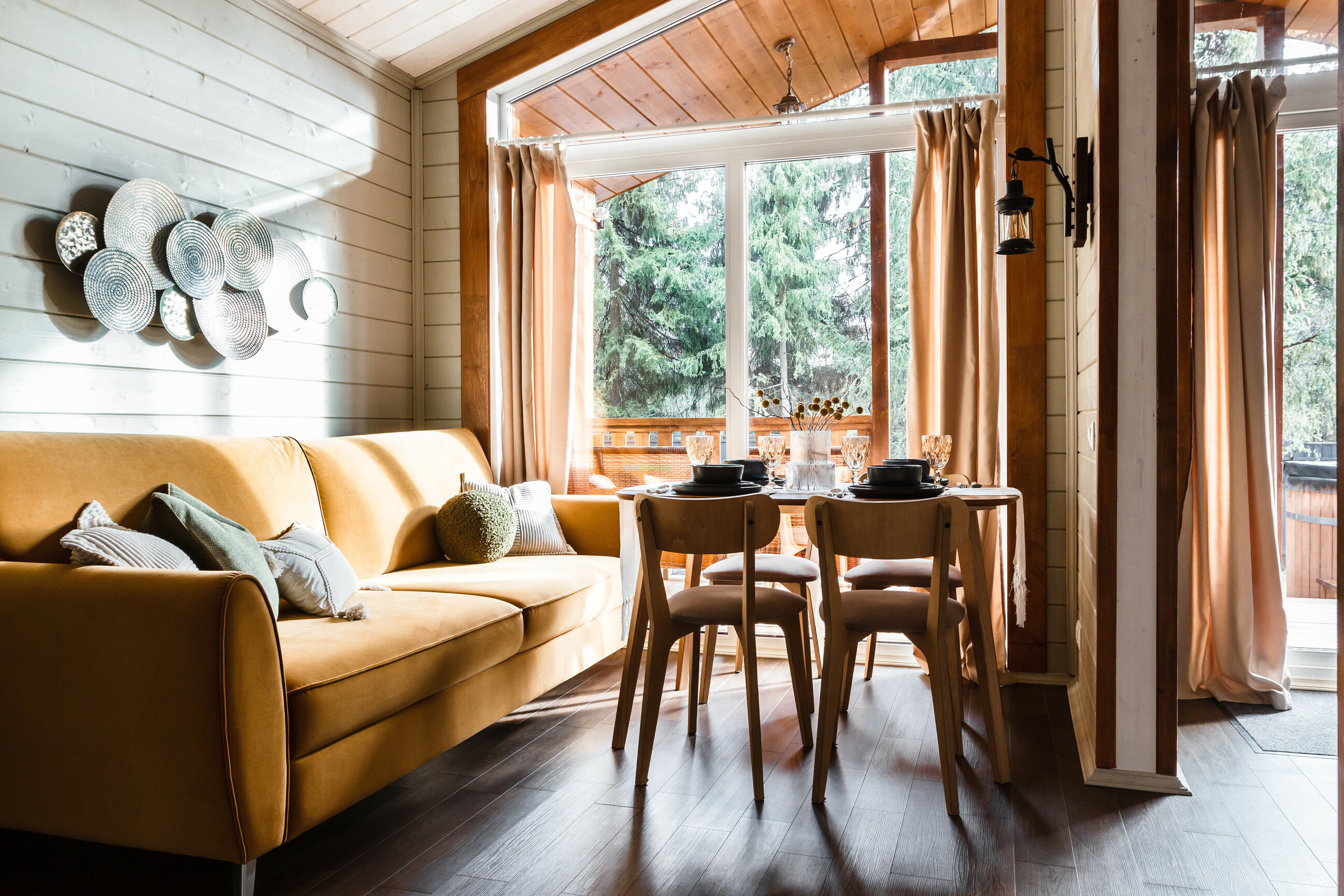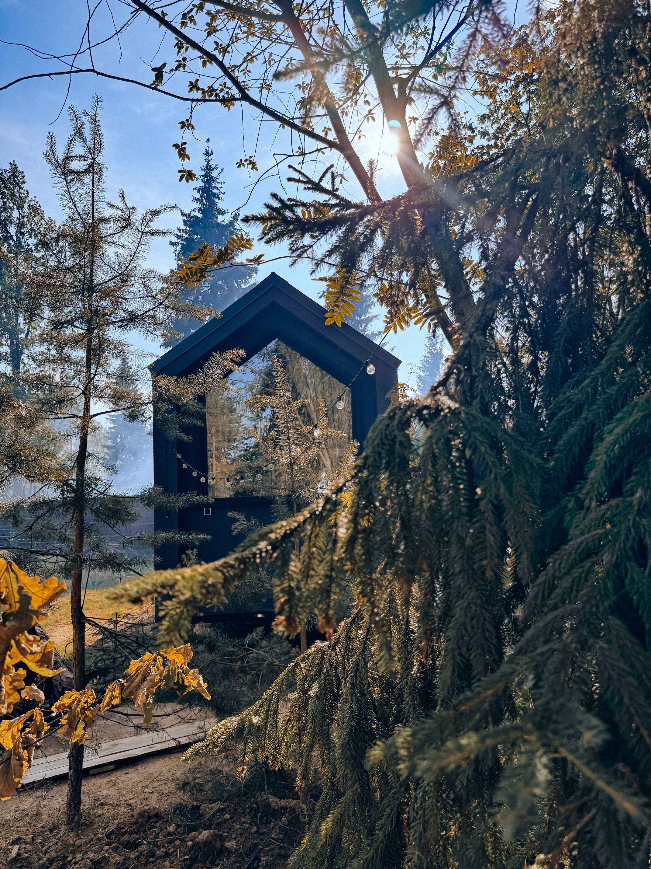 Глэмпинг расположен в 25 километрах от Москвы, среди тихого хвойного леса, где единственным шумом остается шелест деревьев и пение птиц. Рядом с территорией находится живописное лесное озеро, идеально подходящее для пикников на берегу и прогулок на сапе в теплое время года. В пешей доступности работают магазины и аптека, а для гостей на автомобиле предусмотрена удобная парковка.