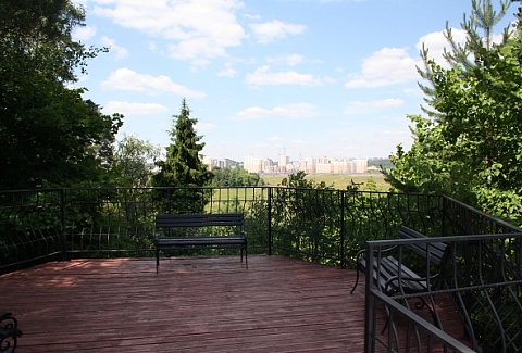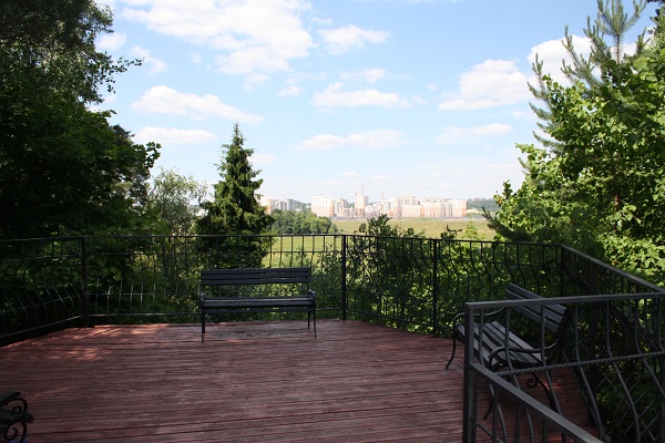 Поездом до ж/д вокзала ст. Киевский, на метро до станции «Кунцевская», далее на автобусе № 452 до остановки «Бани», на автобусе № 13,22,23,24,25,28 до остановки «Санаторий Звенигород», пешком 1,12 км ≈ 13 мин.