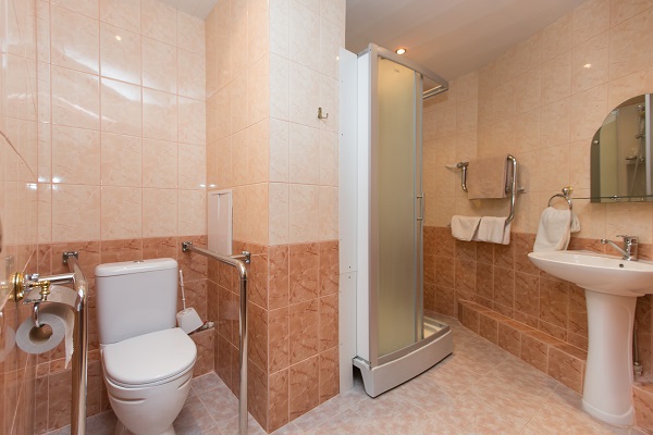 Санузел: с душем, тапочки, туалетные принадлежности, халат