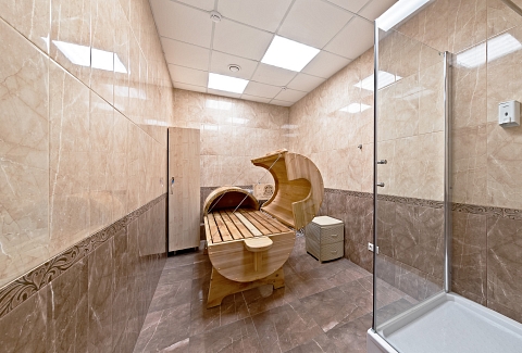 Санузел: сауна, с ванной, тапочки, туалетные принадлежности, фен, халат