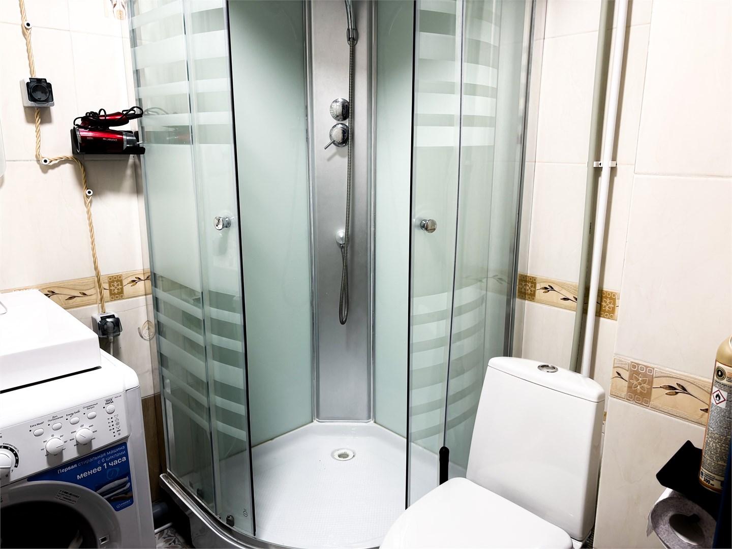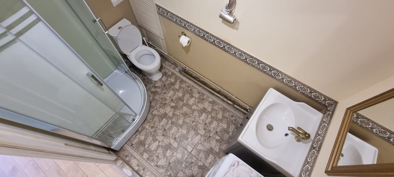 Санузел: с душем, туалетные принадлежности, фен