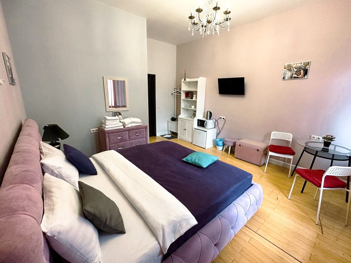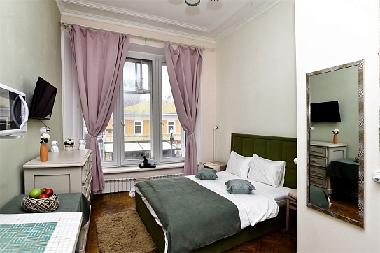 Из окон номеров открывается вид на уникальную и живописную улицу Арбат. В непосредственной близости от отеля расположены магазины, кафе и рестораны.Гостиница предоставляет разнообразные номера с различным уровнем комфорта ив вместимости. Комнаты оснащены всем, что нужно для приятного времяпрепровождения: уютной мебелью, телевизором, кондиционером, холодильником и доступом к Wi-Fi. Санузел индивидуальный, гостям предоставляются гигиенические принадлежности. В некоторых номерах предусмотрена собственная кухня. Доступен заказ еды и напитков в номер.