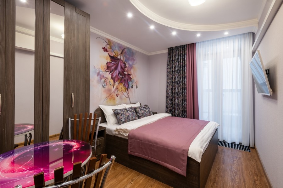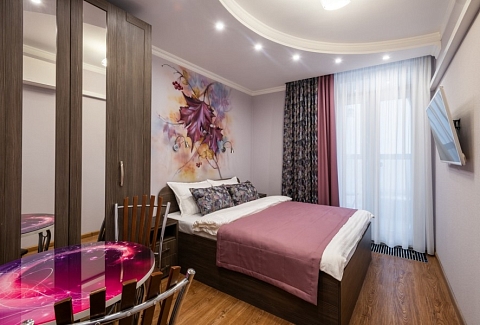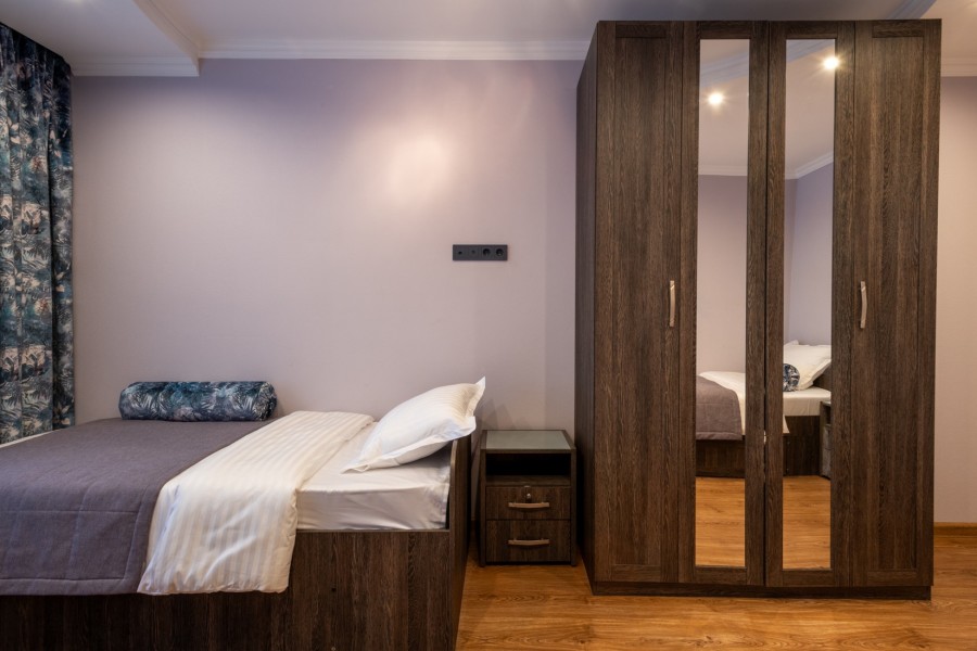 Здесь предусмотрена индивидуальная ванная комната и полноценная кухонная зона, оснащенная необходимым оборудованием для самостоятельного приготовления пищи: холодильником, плитой, чайником, набором посуды и столовых приборов. Удобства включают также телевизор, кондиционер, шкаф, рабочее пространство, места для хранения вещей и электроприборы первой необходимости, такие как стиральная машина, сушилка для белья, утюг и гладильную доску.Стоимость проживания включает полный комплект постельного белья, полотенец, туалетных принадлежностей, тапочек и фена. Гостям предоставляется бесплатный доступ к высокоскоростному Wi-Fi по всему объекту и бесплатная общественная парковка за пределами комплекса. Для комфортного пребывания созданы условия максимальной приватности и удобства: система климат-контроля, наличие балкона, балдахины и светонепроницаемых штор, защищающих номер от посторонних взглядов и солнечного света.