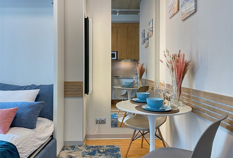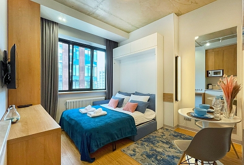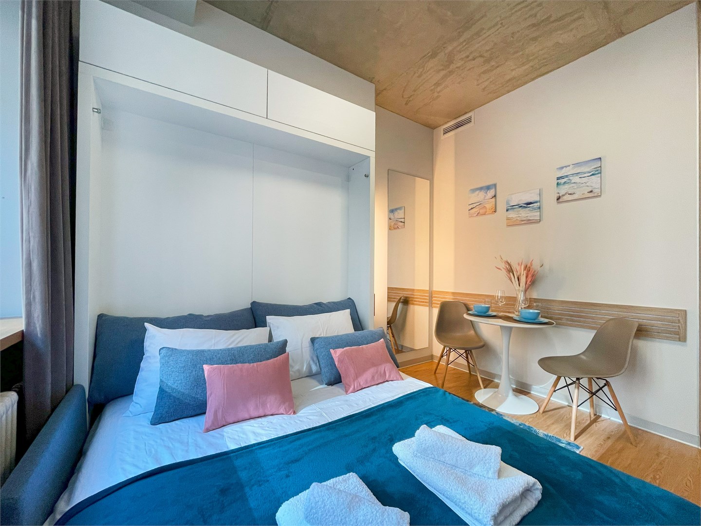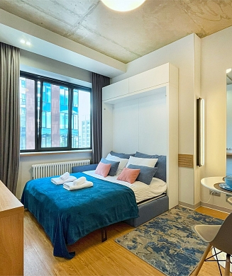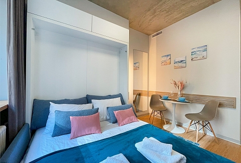 Апартаменты «Гостим тут» номер Reef Glow расположены в жилом комплексе премиум-класса «Искра-Парк» в Москве, вблизи делового центра и с удобной транспортной доступностью. В шаговой доступности находятся бизнес-центр «Искра Парк», два парка и спортивные объекты, магазины, кафе и рестораны, а также станции метро «Динамо».К размещению предлагаются уютные апартаменты с дизайнерским ремонтом в морской тематике, оснащённые двуспальным диваном-кроватью, смарт-телевизором, интернетом Wi-Fi, микроволновой печью и необходимой посудой. Совмещённый санузел оборудован душевой кабиной и стиральной машиной.