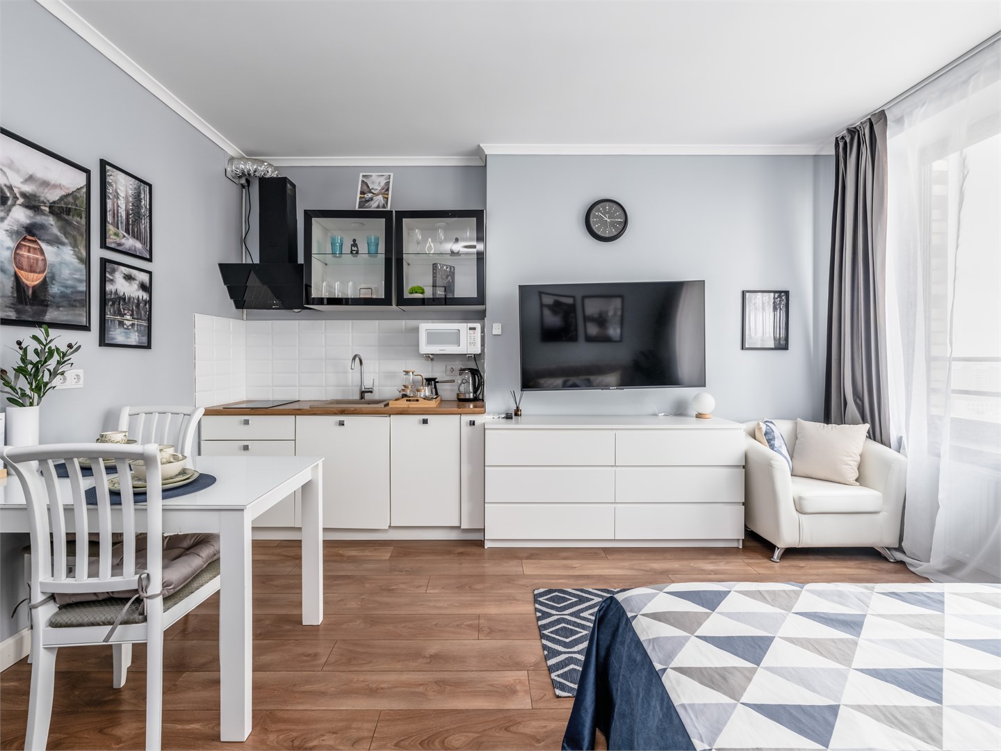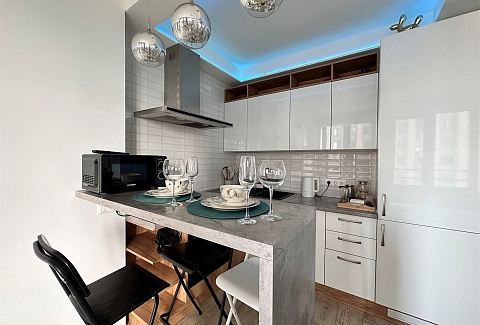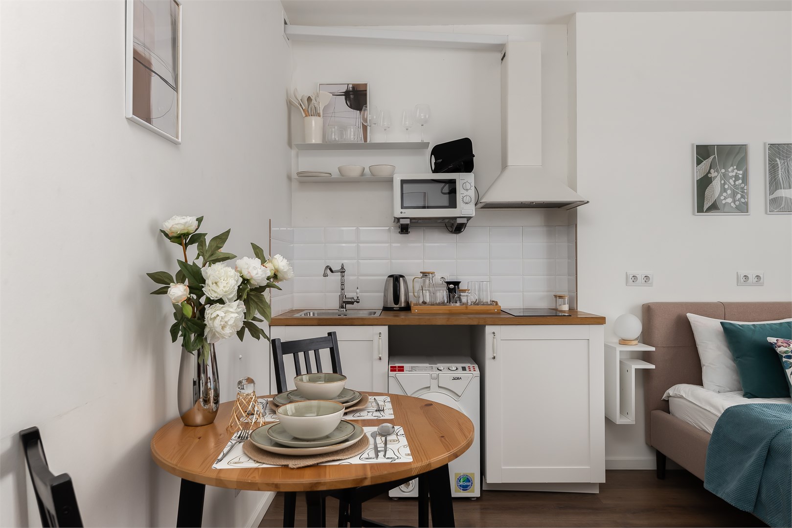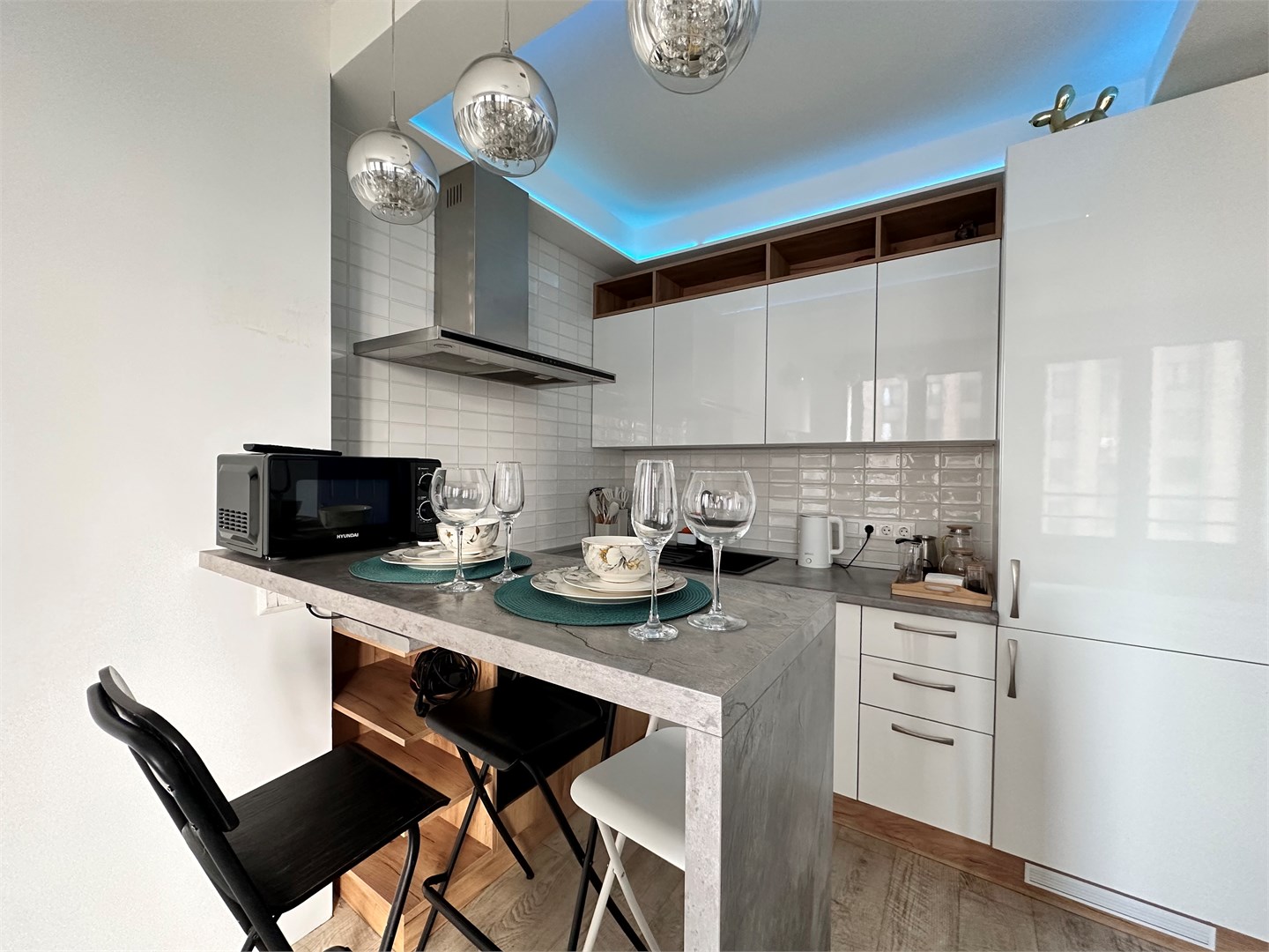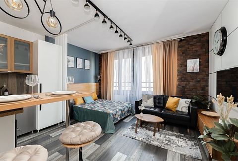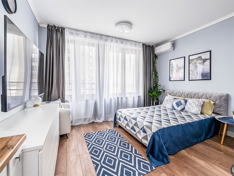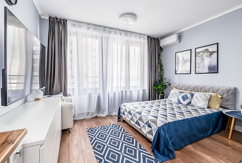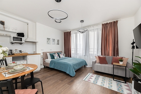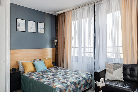 Поблизости находятся стадионы «Динамо» и «Олимпийский», а до центра столицы — около 10–15 минут на автомобиле.Для размещения гостей предлагаются современные дизайнерские апартаменты с продуманными деталями интерьера и заботливым сервисом. В апартаментах двуспальная кровать и раскладной диван, что позволяет комфортно разместить до 4 человек. В распоряжении гостей смарт-телевизор, вместительный шкаф, рабочая и обеденная зоны, интернет Wi-Fi, а также совмещённый санузел с ванной или душем, стиральной машиной, набором полотенец и средств личной гигиены.