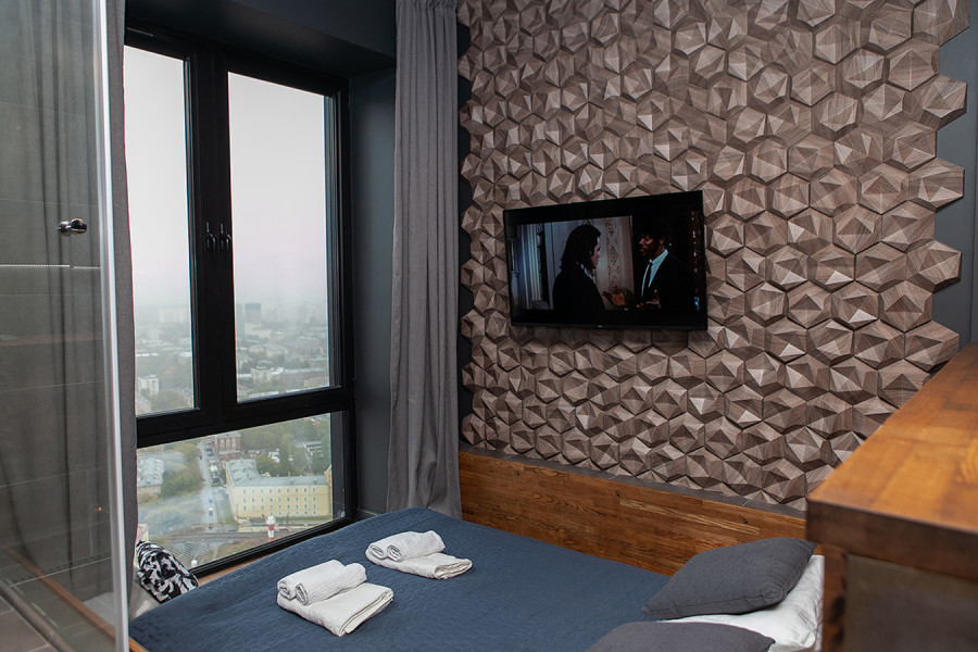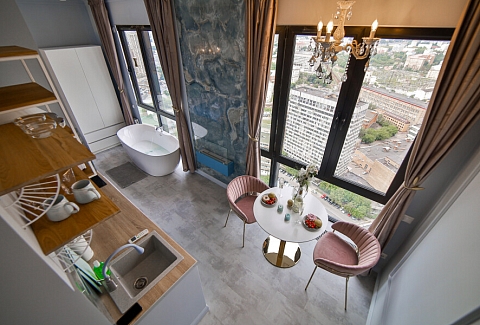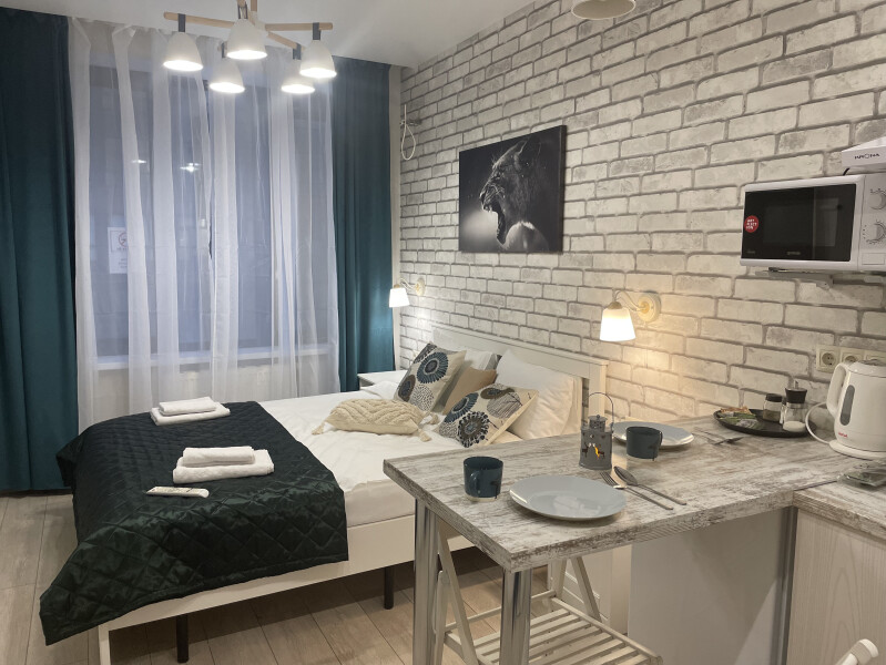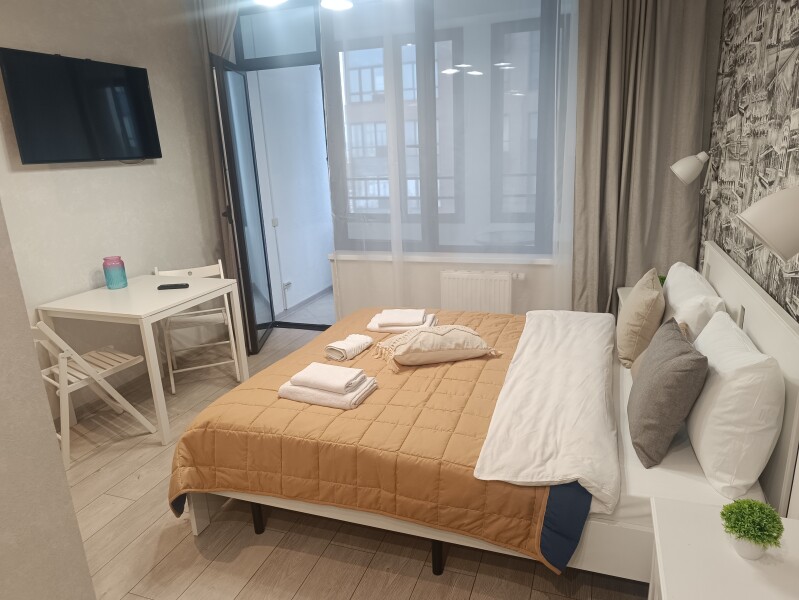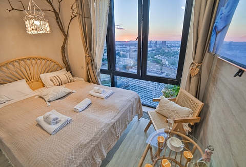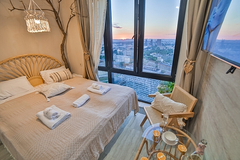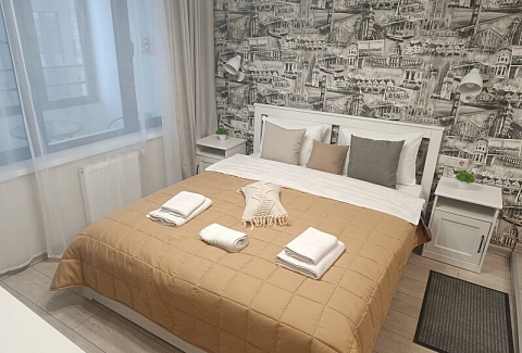 Апартаменты оборудованы всем необходимым для комфортного проживания, удобная двуспальная кровать, интернет Wi-Fi, мини-кухня с холодильником, плитой, чайником и посудой, уютная обеденная зона, горячий душ, телевизор с плоским экраном, стиральная машина.Для автомобилистов есть возможность забронировать парковочные места на 9-м этаже (кровля) в многоуровневом паркинге во дворе комплекса.400 метров до самых творческих кластеров Москвы – Flakon и ХлебоЗавод, 6 км до Кремля. Вокруг находится множество ресторанов, кафе, баров и магазинов. Для самых экстремальных гостей в шаговой доступности от апартаментов скейтпарк. 10 мин. от станции метро Дмитровская.