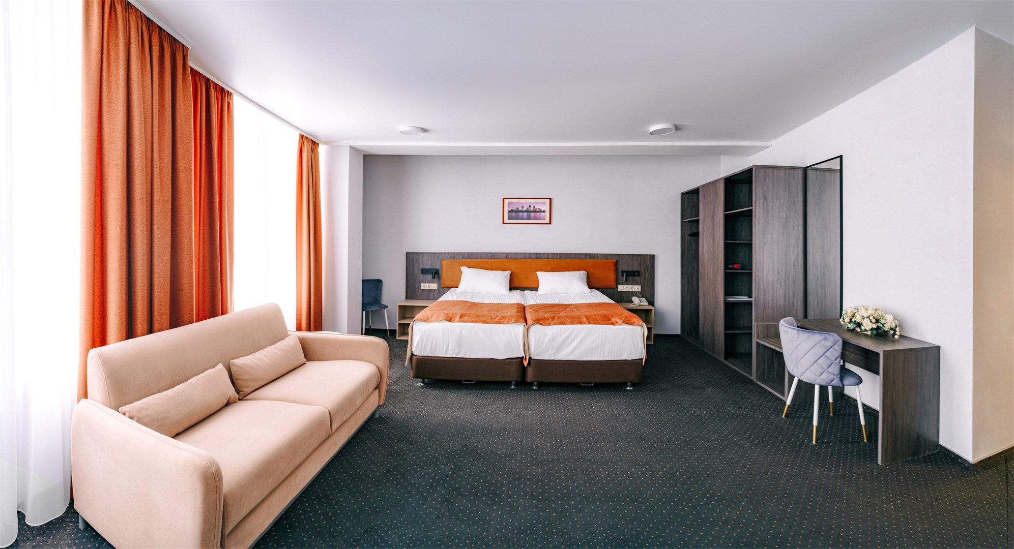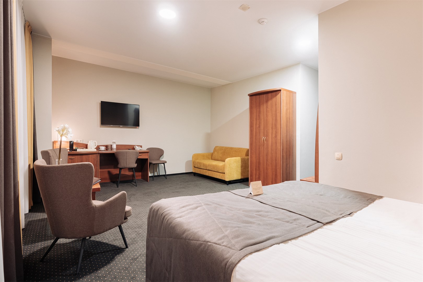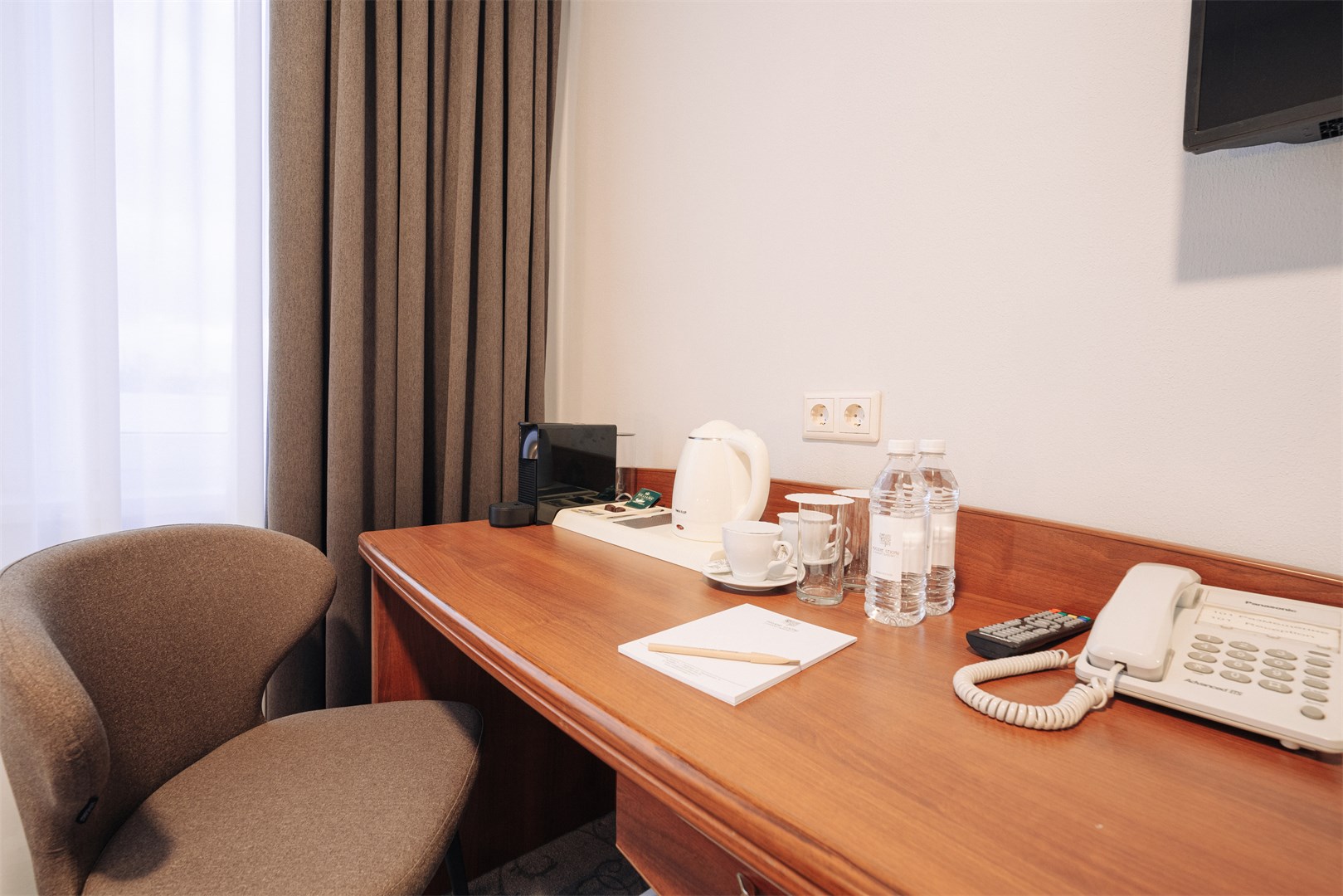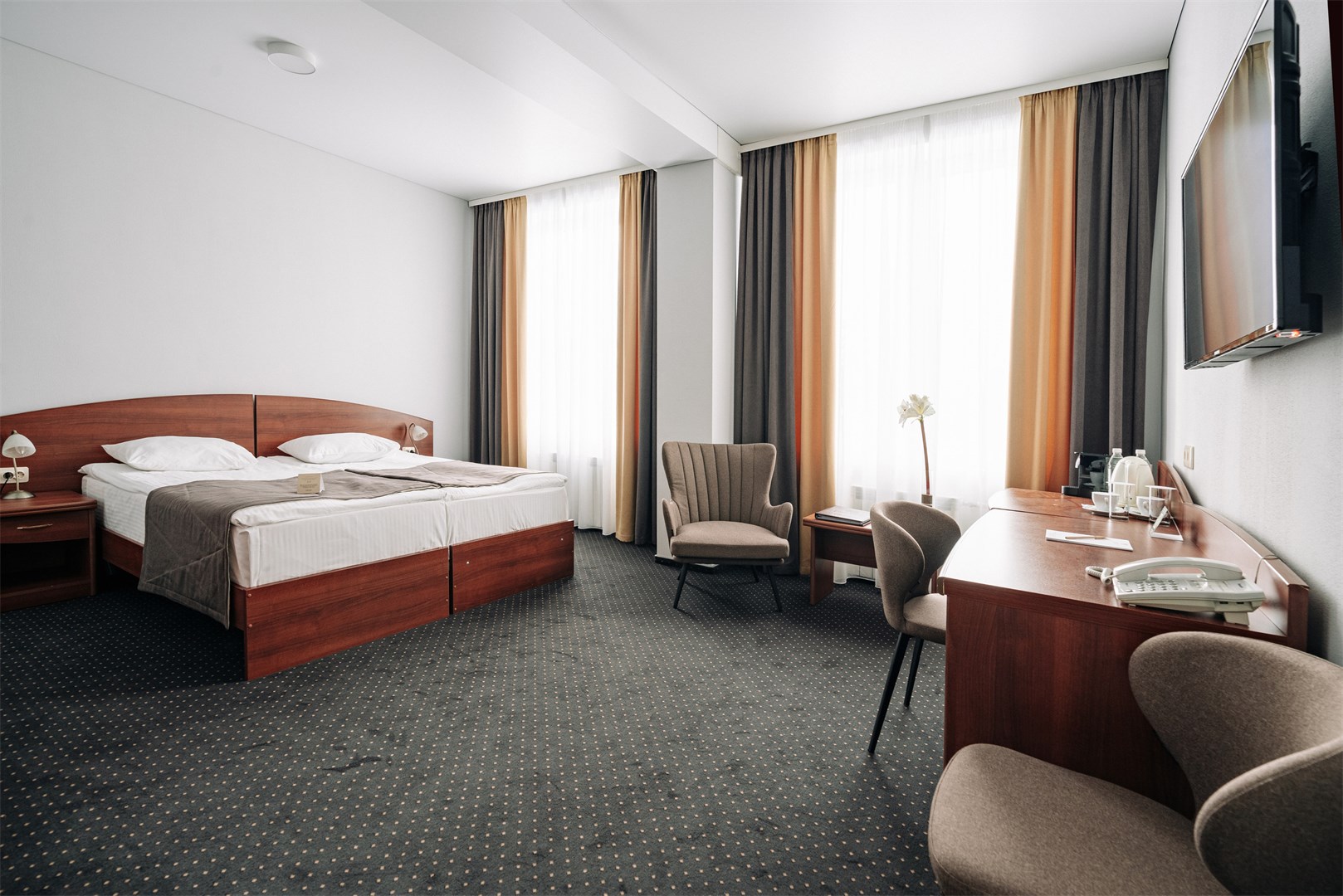 Уютные номера различных категорий укомплектованы удобной мебелью и необходимыми удобствами: телевизором, комплектом полотенец, собственной ванной комнатой, феном, кондиционером и доступом к Wi-Fi. В ресторане-пиццерии предлагается широкий выбор блюд, закусок и напитков. Лобби-бар открыт для гостей круглосуточно. На территории отеля работает SPA-центр, где можно посетить финскую сауну и бассейн с подогревом, а также отдохнуть в комфортной зоне. Для деловых путешественников доступен бизнес-центр и конференц-зал, оснащенный современным оборудованием.