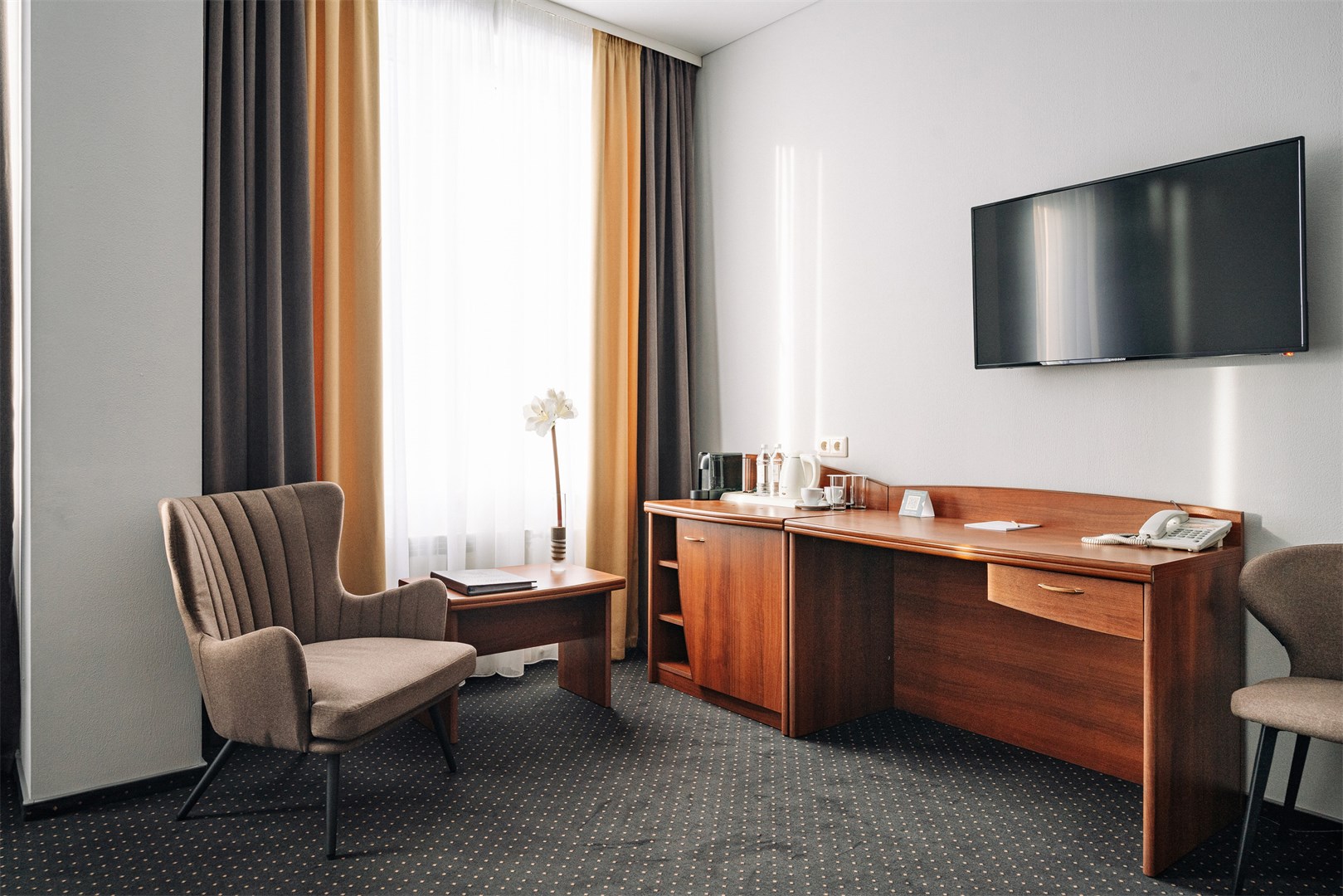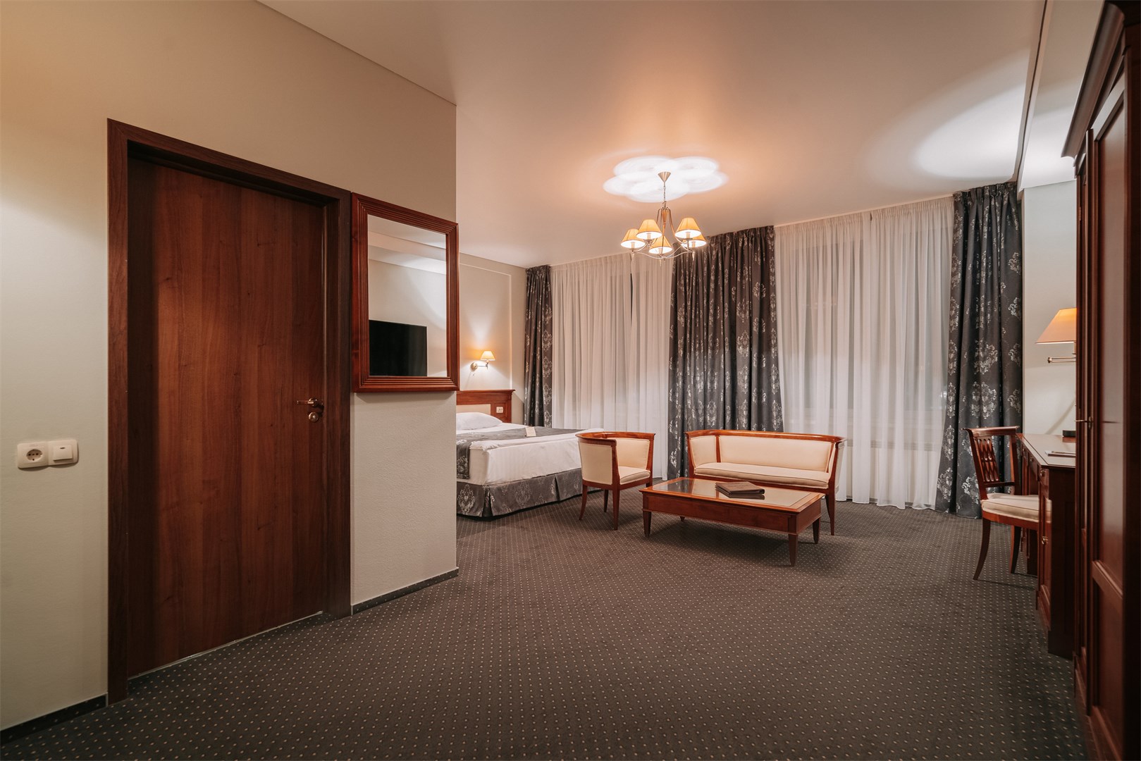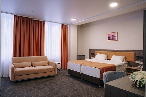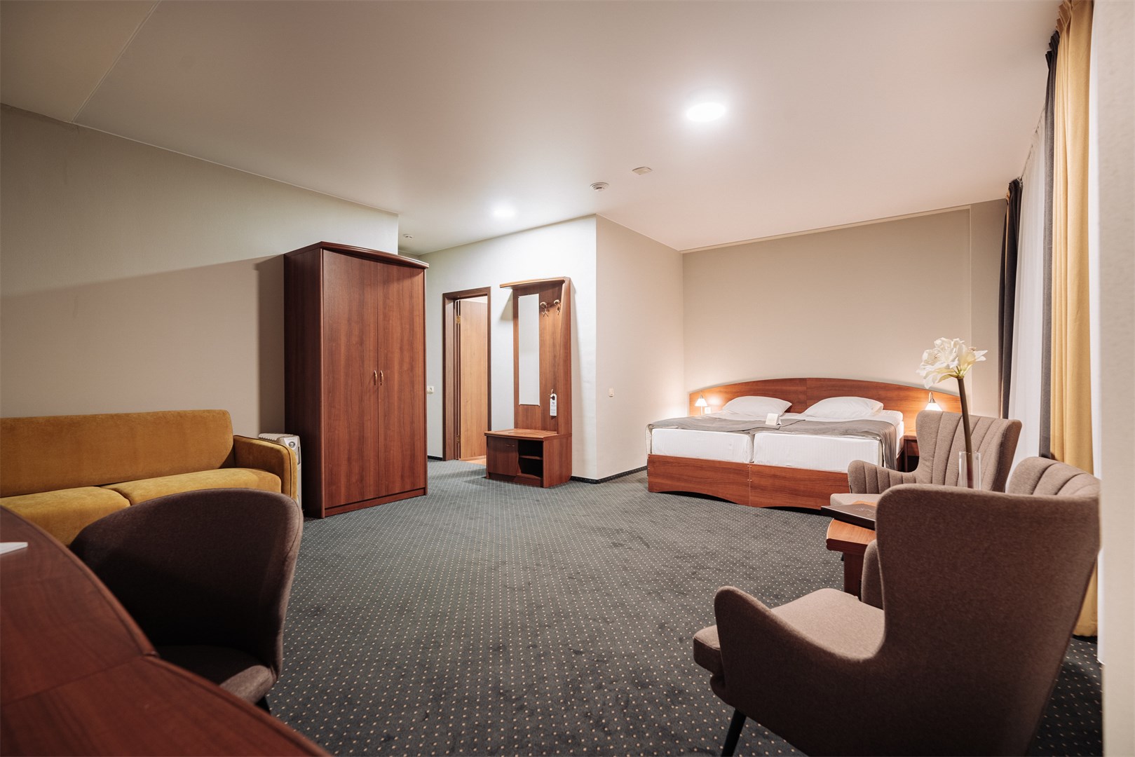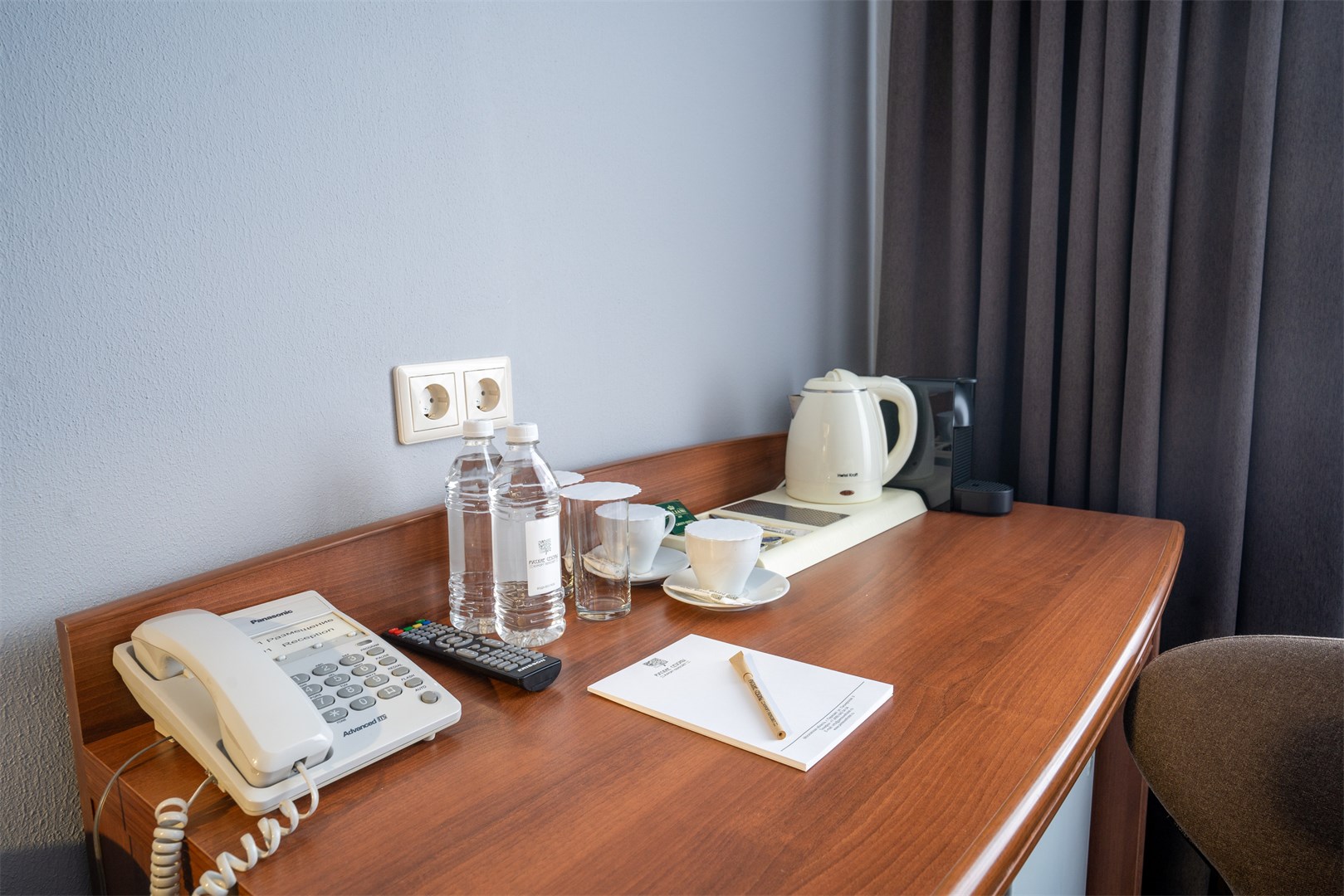 Уютные номера различных категорий укомплектованы удобной мебелью и необходимыми удобствами: телевизором, комплектом полотенец, собственной ванной комнатой, феном, кондиционером и доступом к Wi-Fi. В ресторане-пиццерии предлагается широкий выбор блюд, закусок и напитков. Лобби-бар открыт для гостей круглосуточно. На территории отеля работает SPA-центр, где можно посетить финскую сауну и бассейн с подогревом, а также отдохнуть в комфортной зоне. Для деловых путешественников доступен бизнес-центр и конференц-зал, оснащенный современным оборудованием.