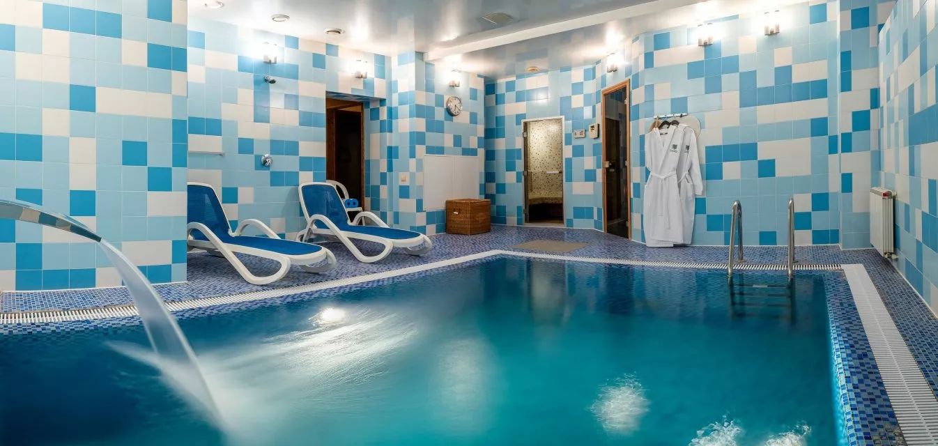 - СПА-центр на первом этаже отеля, с просторной финской парной и подогреваемым бассейном с каскадным душем