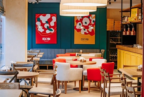 - пиццерия на первом этаже отеля, с уютной террасой и мангальной зоной