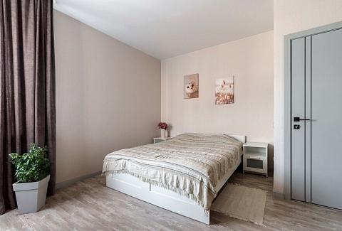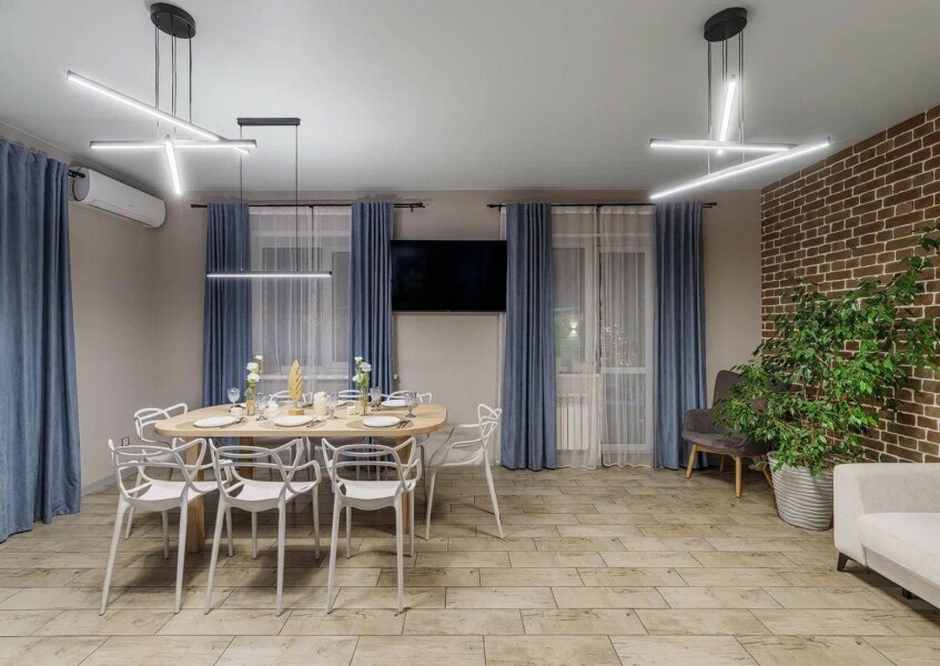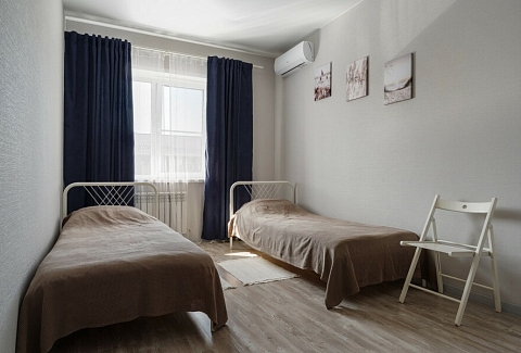 В номере: диван раскладной, кровати односпальные, кровать двуспальная, прикроватные тумбочки, стол, стулья, шкаф, кондиционер, микроволновая печь, набор посуды, плита электрическая, посудомоечная машина, стиральная машина, телевизор, холодильник, чайник, чайный набор посуды