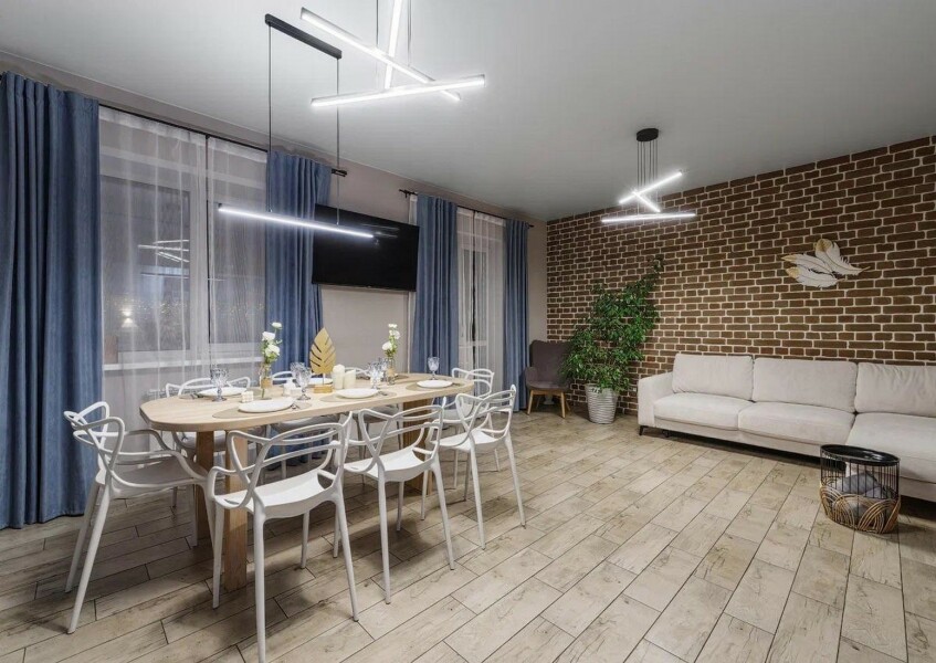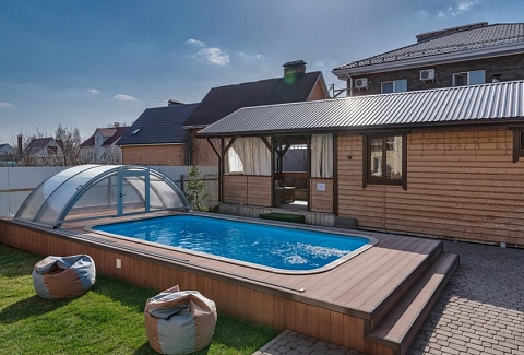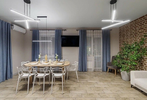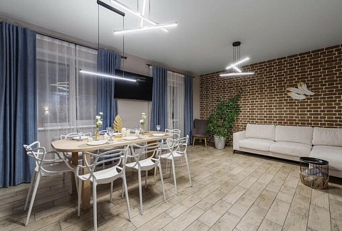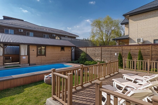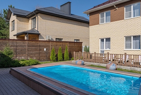 Коттедж «Малиновый» площадью 140 квадратных метров расположен всего в 15 минутах езды от центра Репного. Здесь предусмотрена просторная гостиная объединённая со столовой, рассчитанная на комфортное размещение группы до 8 гостей. Спальное пространство состоит из трёх отдельных комнат и двух удобных раскладывающихся диванов марки Askona, обеспечивающих отдых восьми гостям одновременно.Просторная кухня оборудована всей необходимой бытовой техникой: посудой, столовыми приборами, холодильником, плитой, электрической духовкой, электрическим чайником, микроволновой печью и посудомоечной машиной.Отдельно стоит отметить наличие русской бани и всесезонного закрытого бассейна размером 3х6 метра, оснащённого защитным навесом.