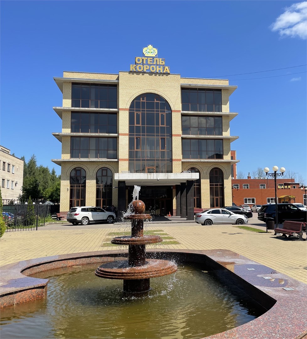Гостиничный комплекс «Корона» представляет собой современный отель, постоянно развивающийся и расширяющий спектр услуг для своих гостей. Транспортная доступность обеспечивается за счет близости остановок маршрутного такси и автобусов, а для путешествующих на автомобиле предусмотрена просторная парковка. Спасо-Преображенский монастырь находится в 15 минутах езды.