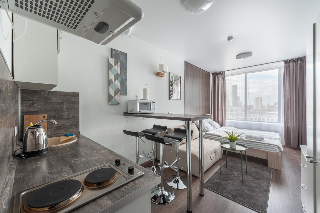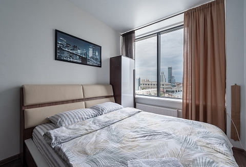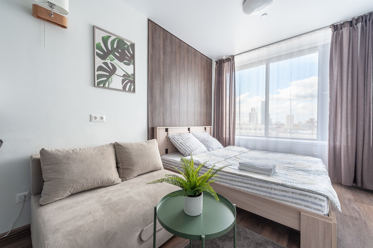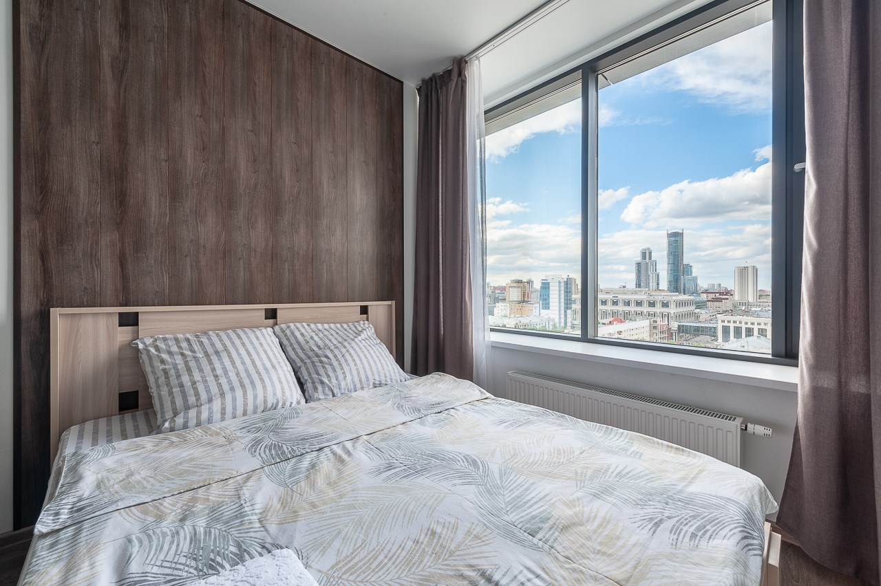Поездом до ж/д вокзала г. Екатеринбург (Екатеринбург-Пассажирский), далее на метро до станции «Площадь 1905 года», далее 400 м до апартаментов.