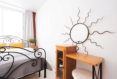 В номере: вешалка, зеркало, кровать двуспальная, стол, стулья, шкаф, гладильная доска, кондиционер, микроволновая печь, мини-холодильник, набор посуды, плита электрическая, стиральная машина, сушилка для белья, телевизор, утюг, электрочайник