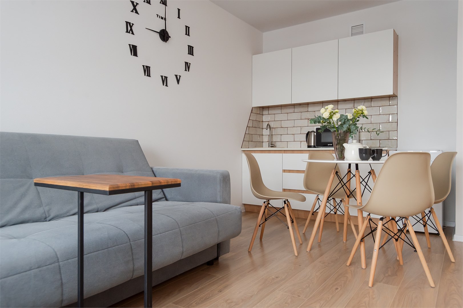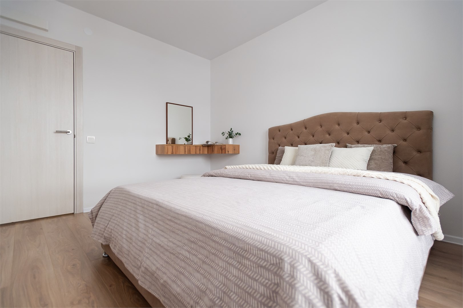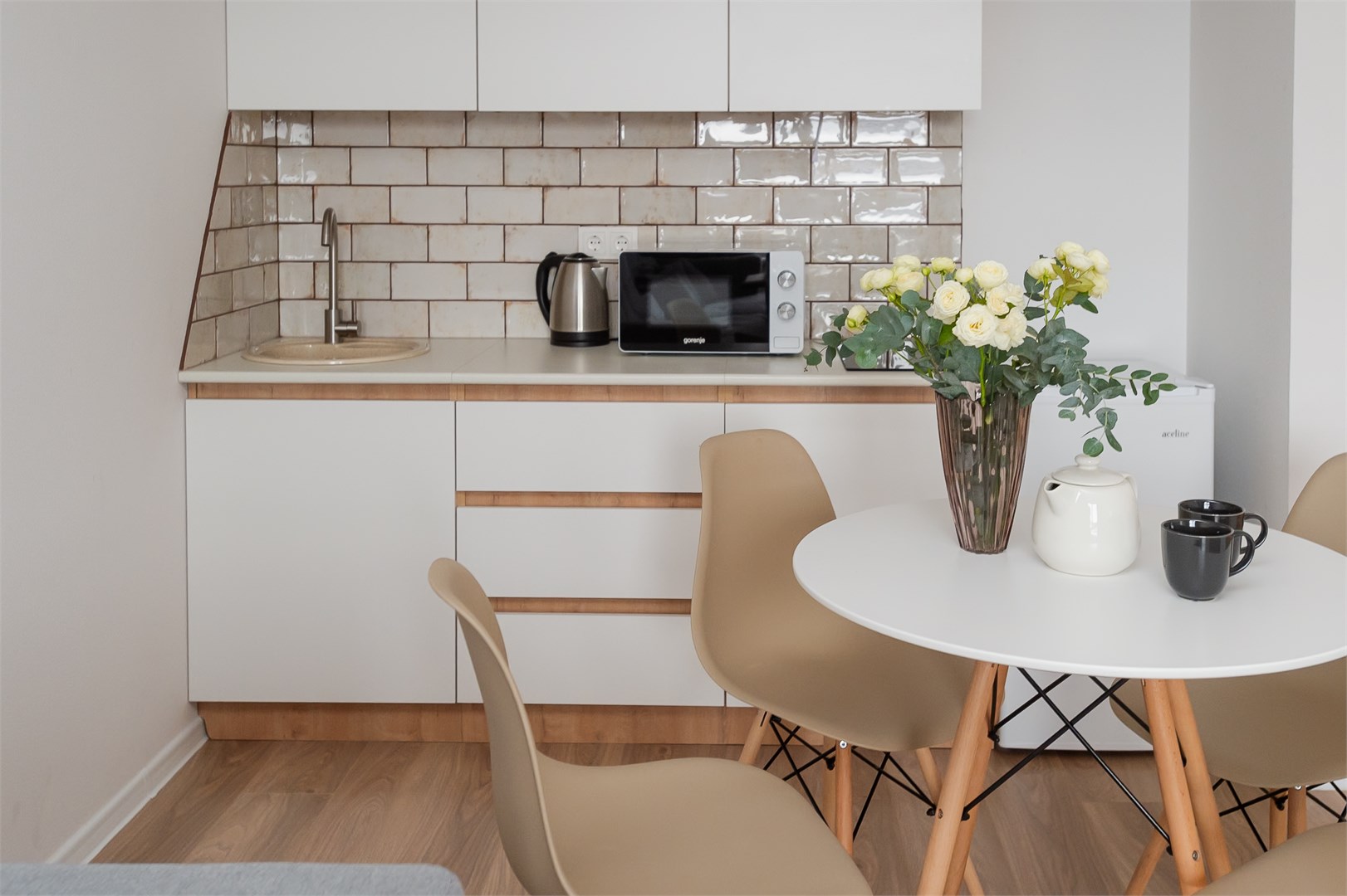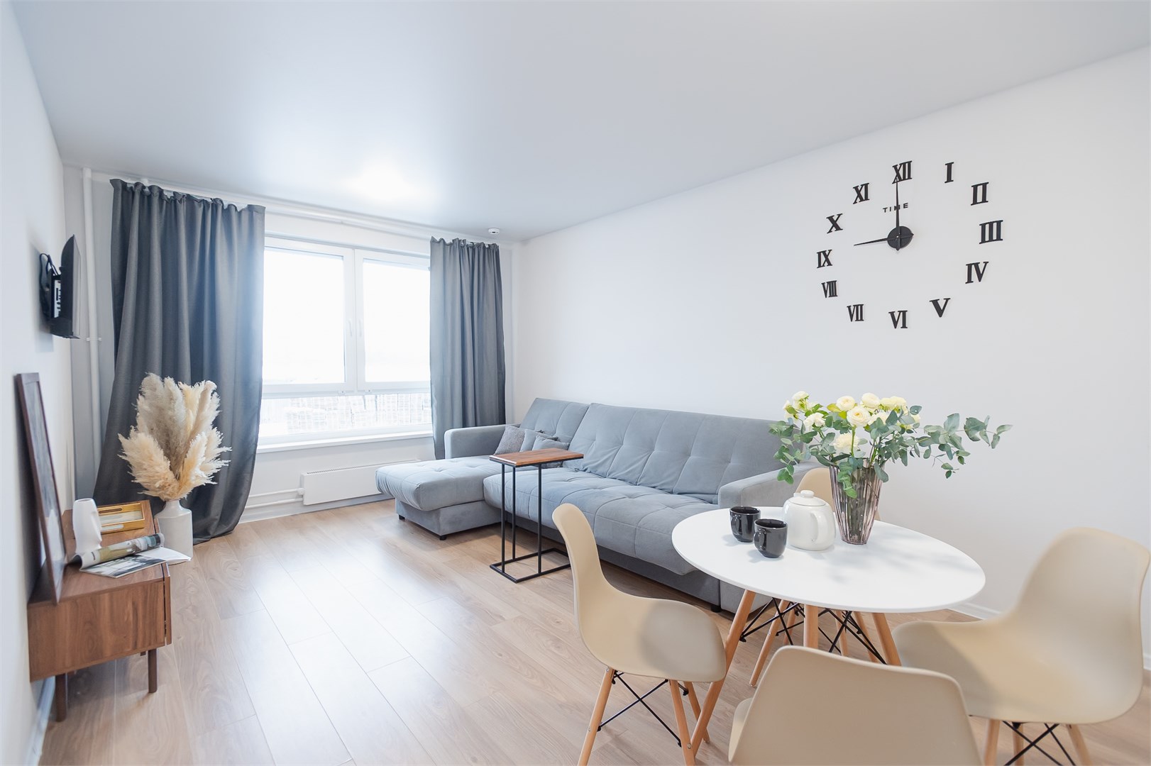 В номере: вешалка, диван раскладной, зеркало, кровать двуспальная, пуфик, стол, столик туалетный, шкаф, гладильная доска, микроволновая печь, мини-холодильник, набор посуды, плита электрическая, стиральная машина, сушилка для белья, телевизор, утюг, электрочайник