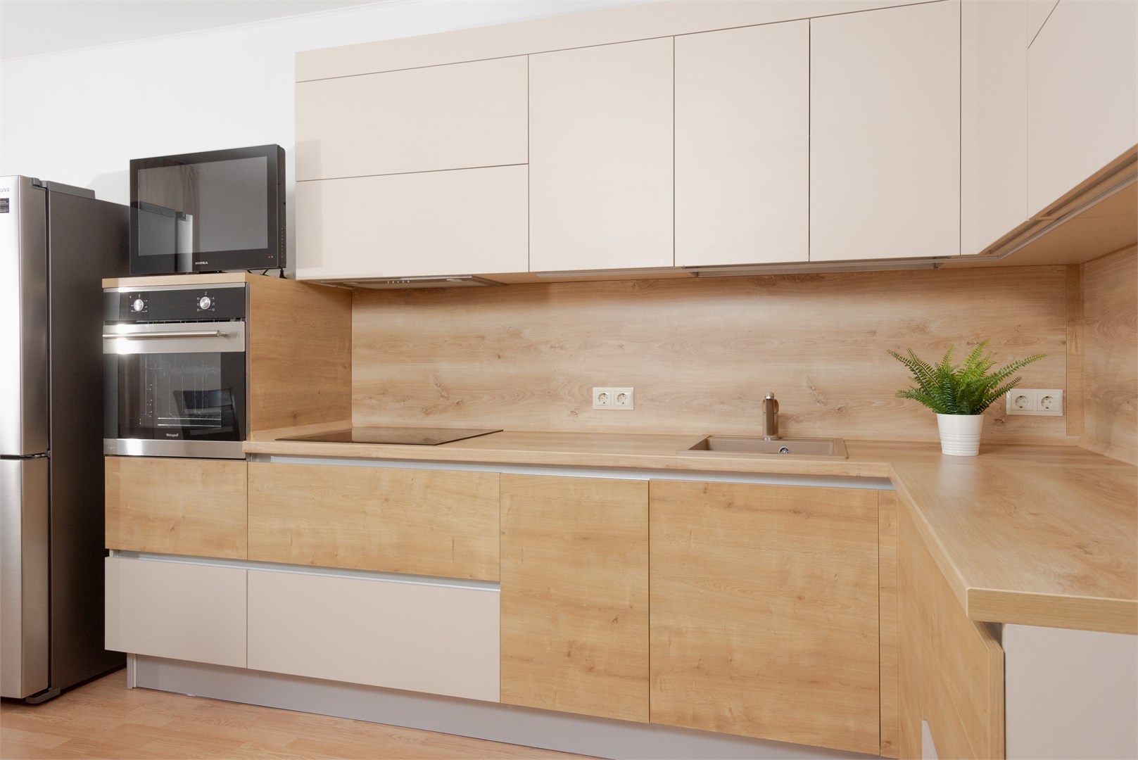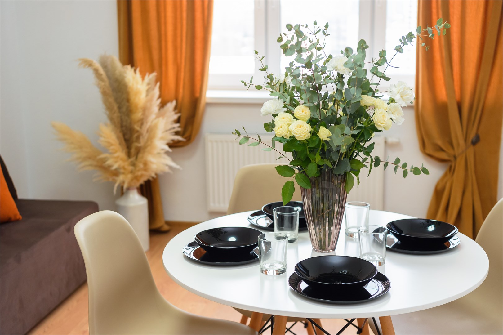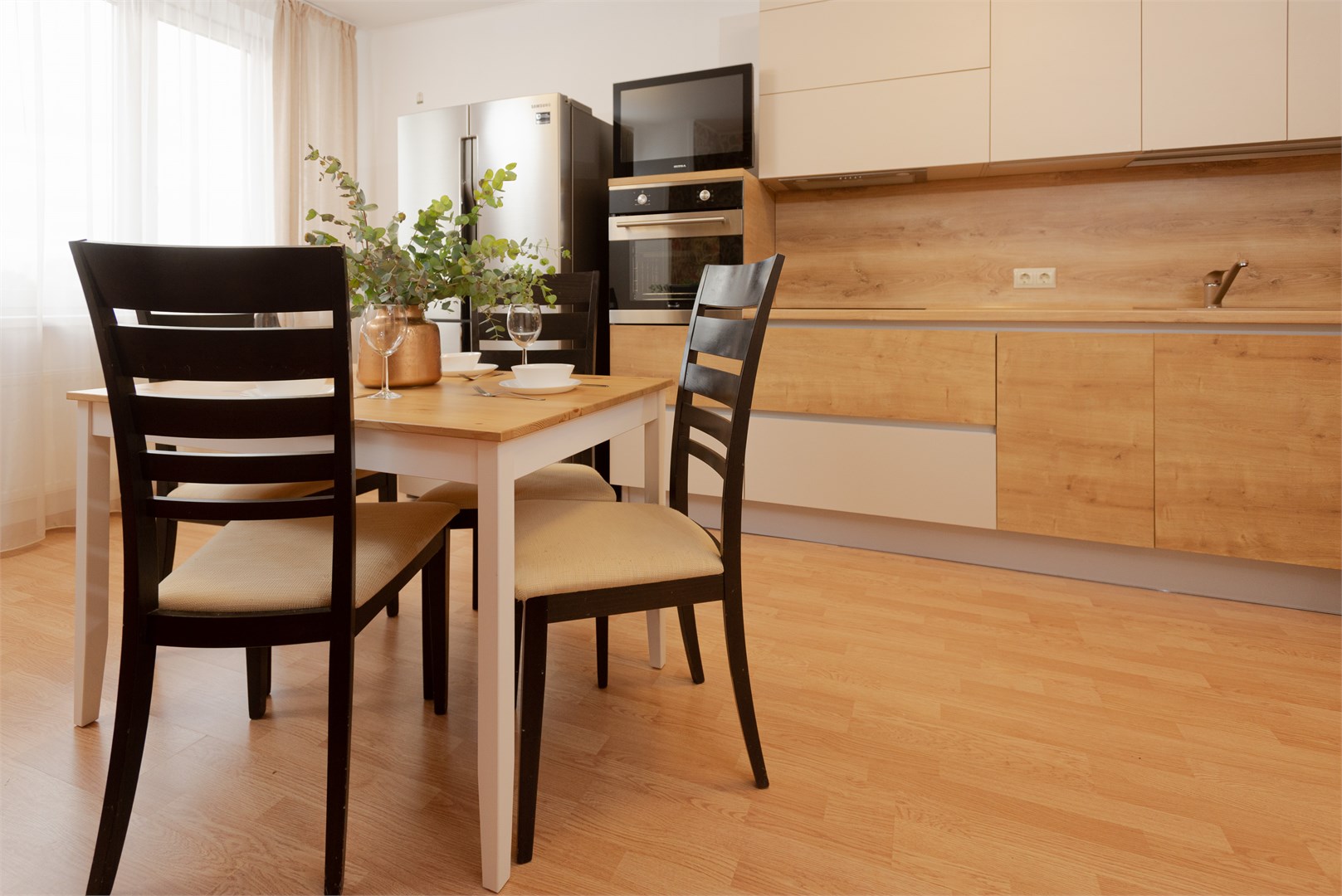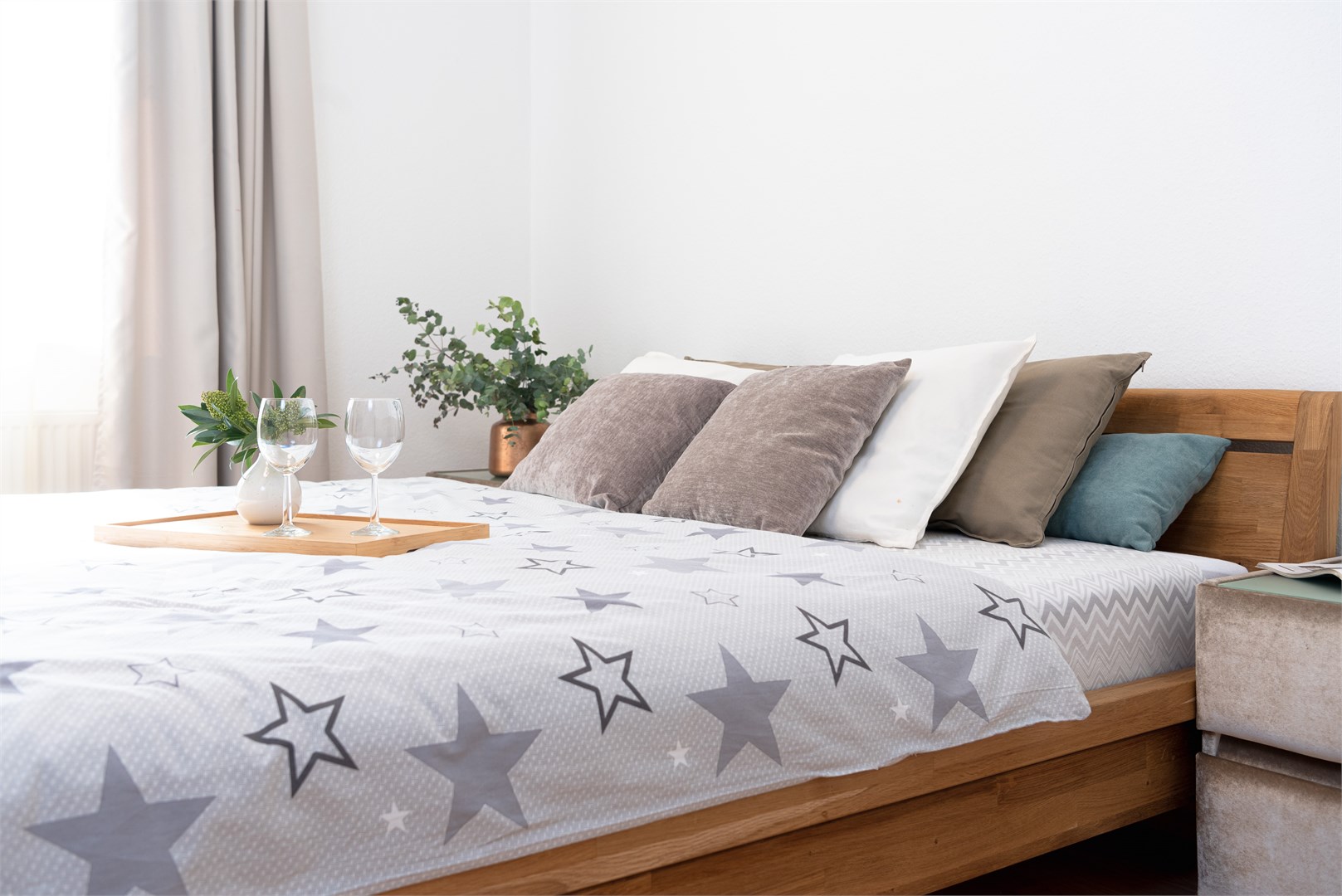 В номере: вешалка, диван раскладной, зеркало, кровать двуспальная, прикроватные тумбочки, стол, стулья, тумба под телевизор, шкаф, гладильная доска, духовой шкаф, микроволновая печь, набор посуды, плита электрическая, стиральная машина, сушилка для белья, телевизор, утюг, холодильник, электрочайник