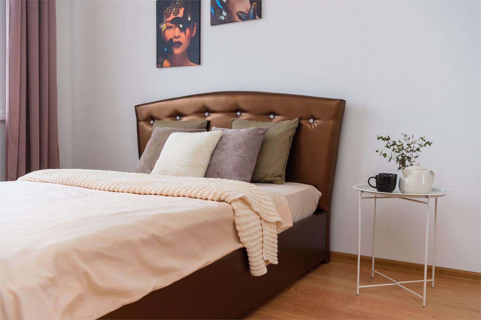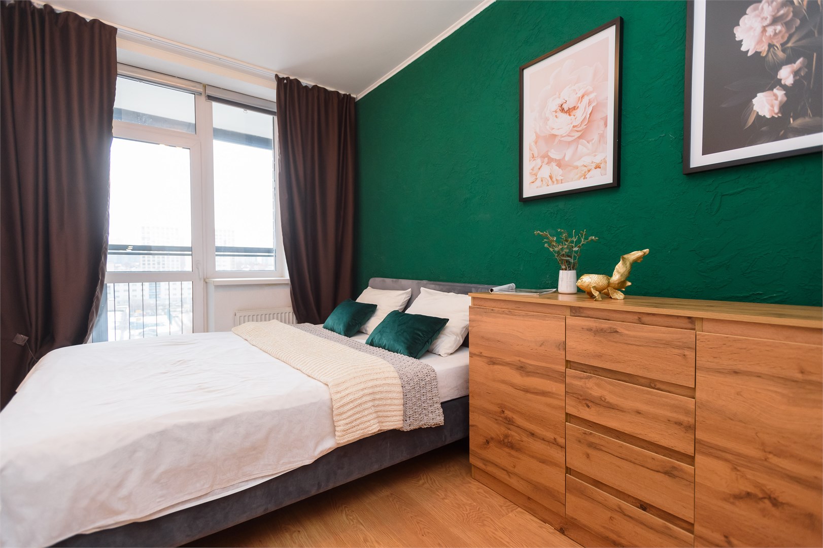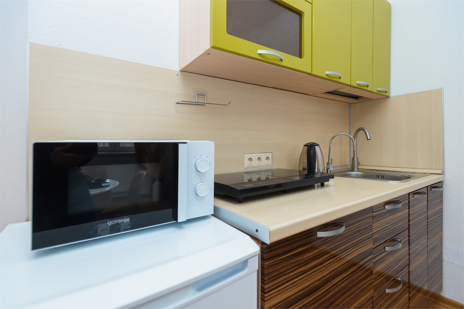 В номере: вешалка, диван раскладной, зеркало, комод, кровать двуспальная, стол, стулья, гладильная доска, микроволновая печь, мини-холодильник, набор посуды, плита электрическая, сушилка для белья, телевизор, утюг, электрочайник