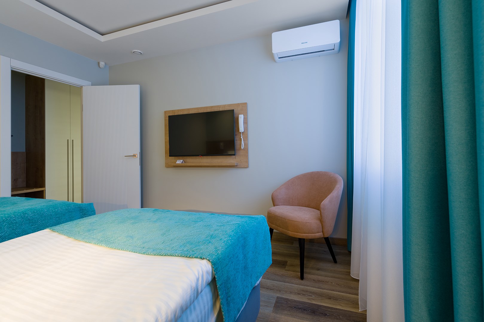 В номере: вешалка, диван раскладной, зеркало, кровати односпальные, кровати односпальные /одна двуспальная кровать, прикроватные тумбочки, стол, стулья, шкаф, гладильная доска, кондиционер, микроволновая печь, мини-холодильник, набор посуды, плита электрическая, посудомоечная машина, сейф, стиральная машина, сушилка для белья, телевизор, утюг, электрочайник