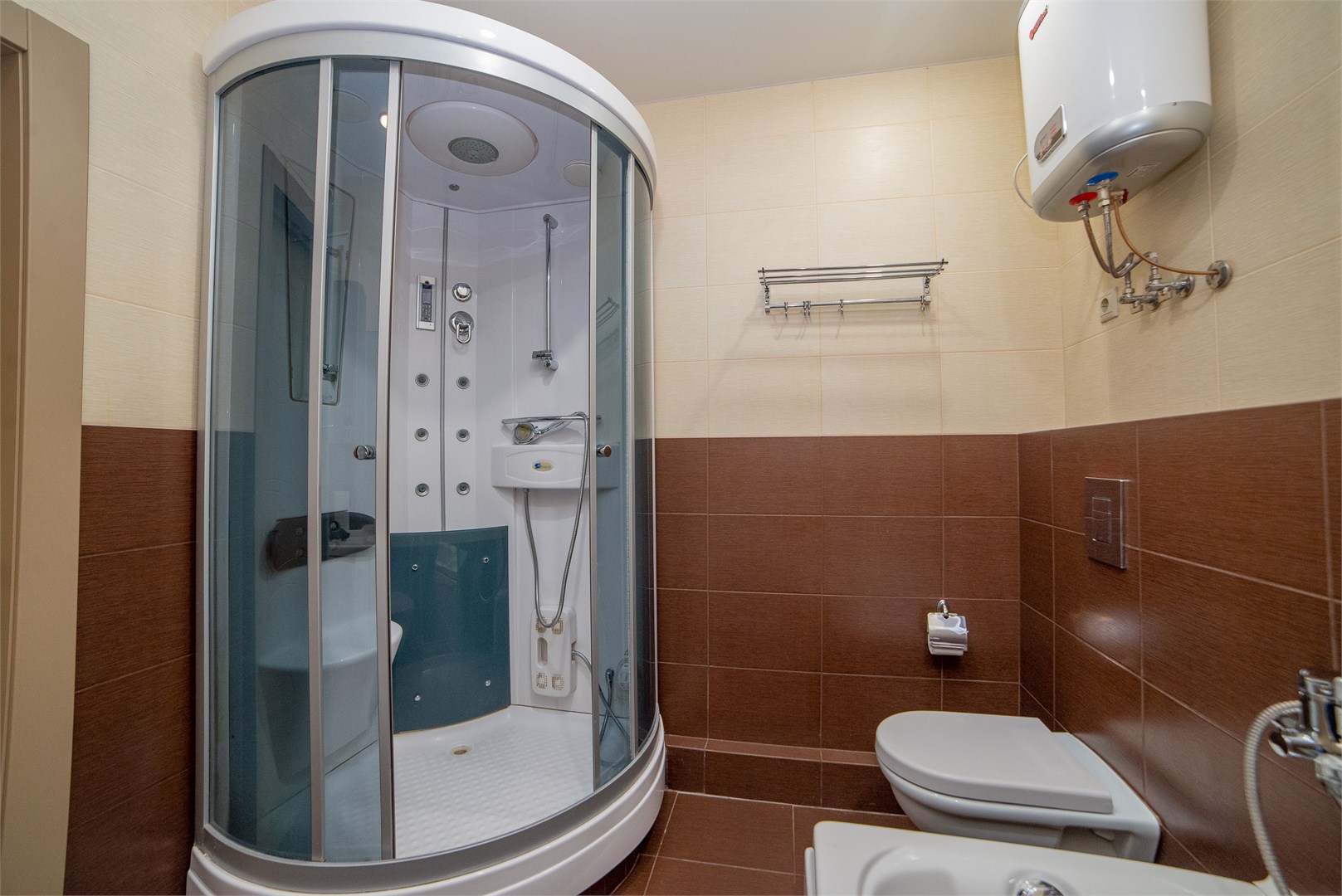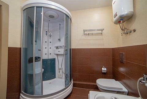 Санузел: с ванной, с душевой кабиной, туалетные принадлежности, фен