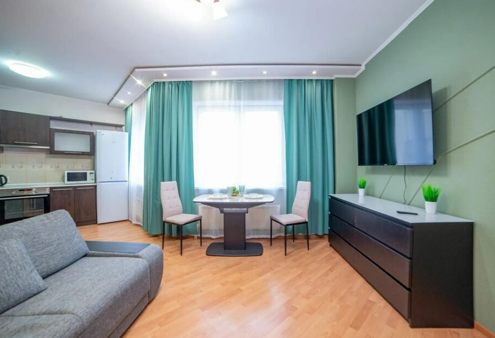 Интерьер выполнен в современном стиле с акцентом на функциональность и уют: предусмотрена оборудованная кухня, собственный санузел, телевизор, зона отдыха и хранения.В ЖК предусмотрены базовые сервисы для комфортного проживания, включая доступ к парковке и возможность самостоятельного заселения. Благодаря формату апартаментов размещение подходит как для краткосрочного пребывания, так и для более длительного проживания в Екатеринбурге.