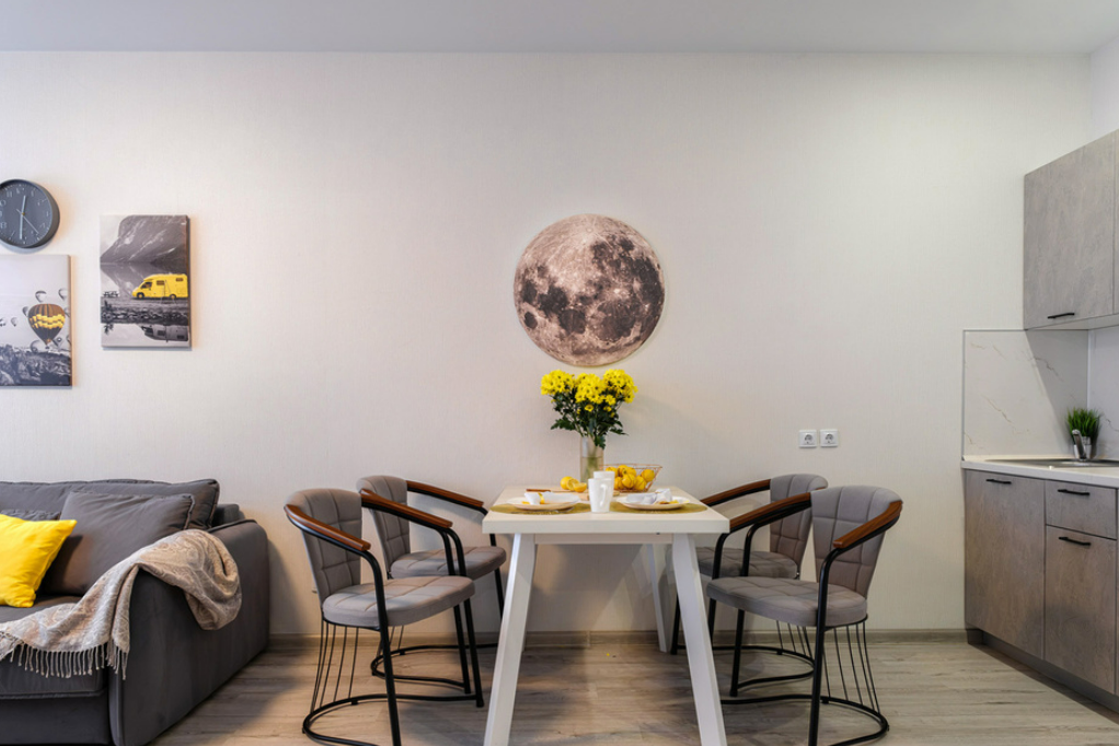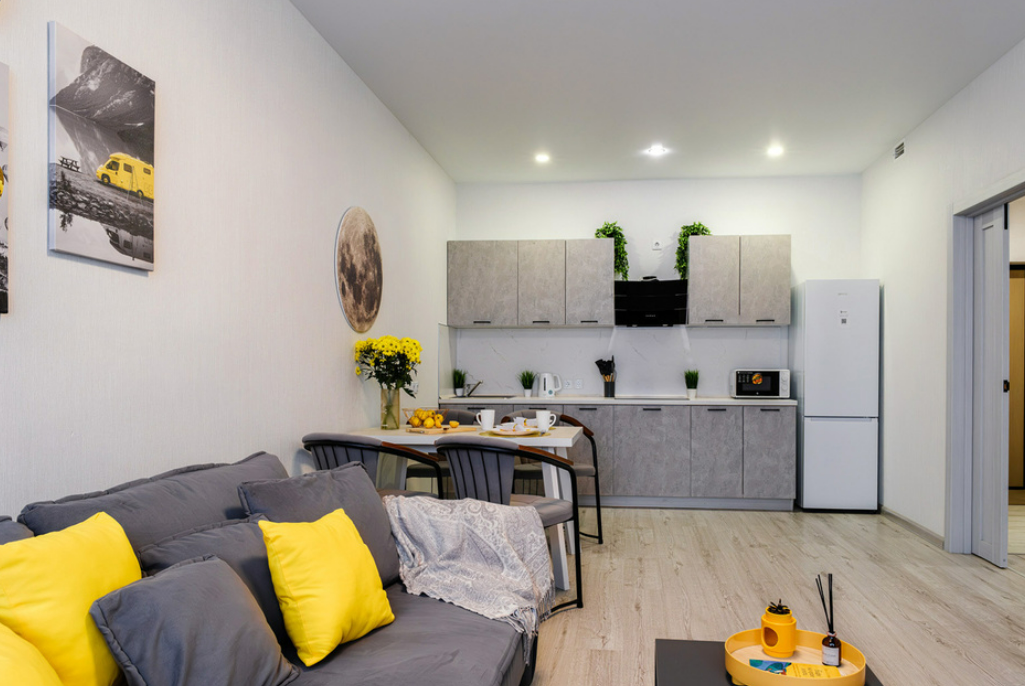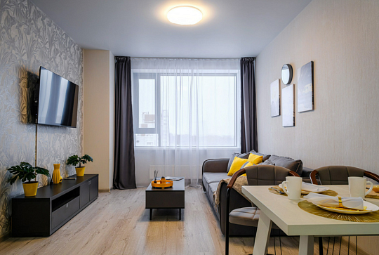 Апартаменты оформлены в актуальном стиле с акцентом на функциональность и комфорт: в интерьерах сочетаются нейтральные оттенки, продуманное освещение и эргономичная мебель. В распоряжении гостей — оборудованная кухня, зона отдыха, собственная ванная комната, а также бытовая техника, необходимая как для краткосрочного, так и для длительного проживания.На территории комплекса предусмотрены удобства, ориентированные на комфорт повседневного проживания: рядом работают кафе и продуктовые магазины, в здании и поблизости доступны парковочные пространства.