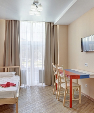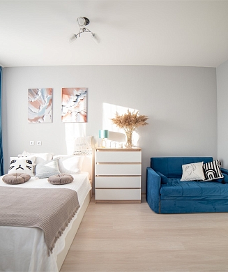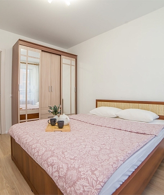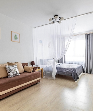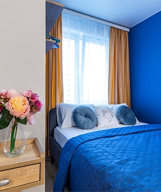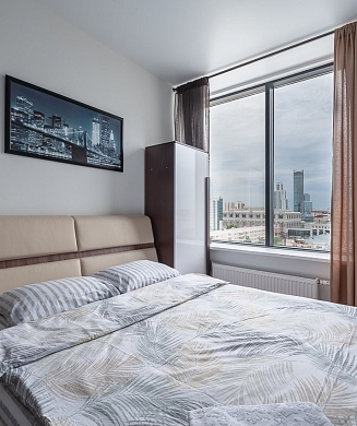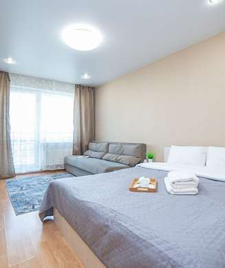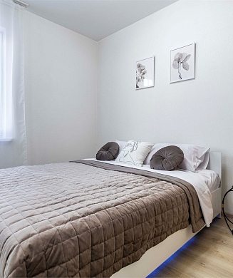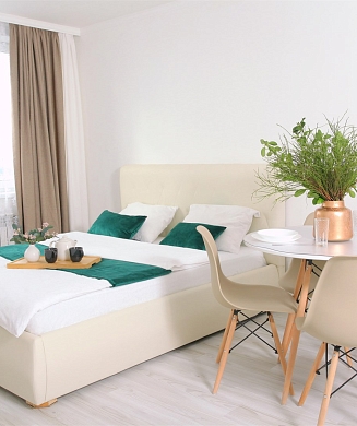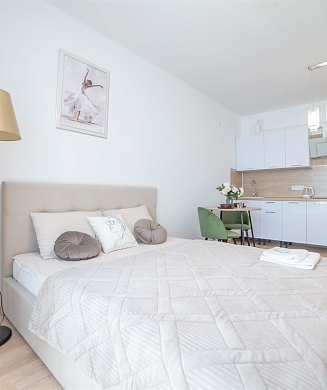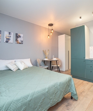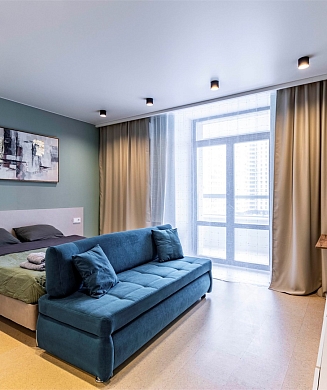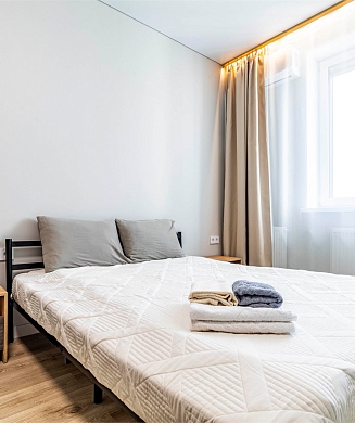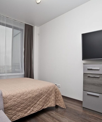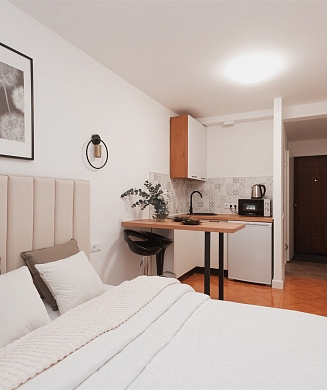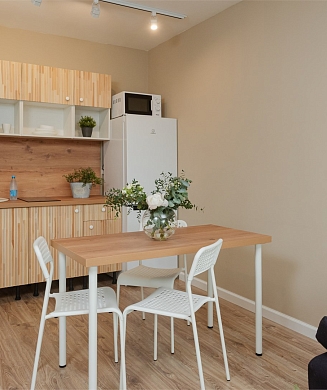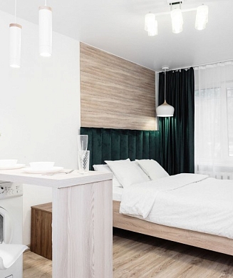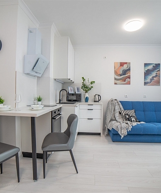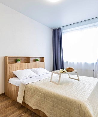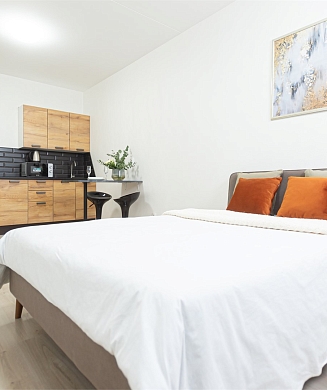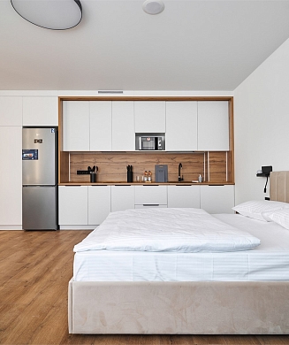 Апартаменты оформлены в актуальном стиле с акцентом на функциональность и комфорт: в интерьерах сочетаются нейтральные оттенки, продуманное освещение и эргономичная мебель. В распоряжении гостей — оборудованная кухня, зона отдыха, собственная ванная комната, а также бытовая техника, необходимая как для краткосрочного, так и для длительного проживания.На территории комплекса предусмотрены удобства, ориентированные на комфорт повседневного проживания: рядом работают кафе и продуктовые магазины, в здании и поблизости доступны парковочные пространства.