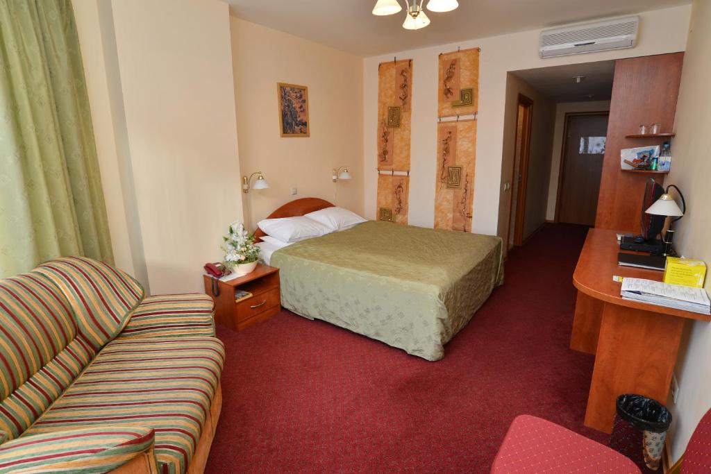 В пешей доступности находится Дендропарк и сад Центра современного искусства, парк «Зеленая роща», ТРЦ «Гринвич», стадион «Екатеринбург Арена», цирк. Поблизости расположены кафе, пекарня, супермаркеты. До аэропорта «Кольцово» можно доехать в течение получаса, до железнодорожного вокзала – за 10-15 минут.Отель размещается на 1-2 этаже 16-этажного жилого дома. Для проживания предусмотрено 30 номеров, оформленных в классическом стиле. Оснащение номеров порадует даже требовательных гостей: кабельное ТВ, кондиционер, мини-холодильник, сейф, телефон, Wi-Fi, рабочий стол и удобная кровать, совмещенный санузел с ванной или душем, фен, гигиенические принадлежности.Континентальный завтрак ожидает гостей в лобби-баре. На цокольном этаже для удобства отдыхающих работает сауна с купелью, мини-кухней и просторной зоной отдыха, тренажерный зал и бильярд.