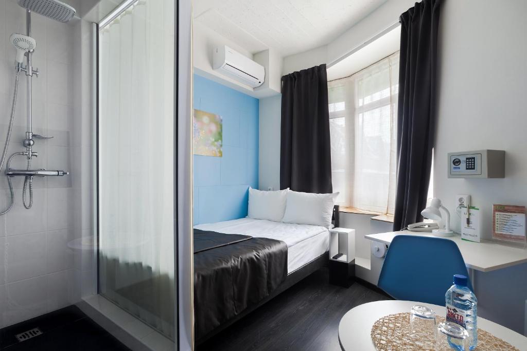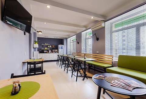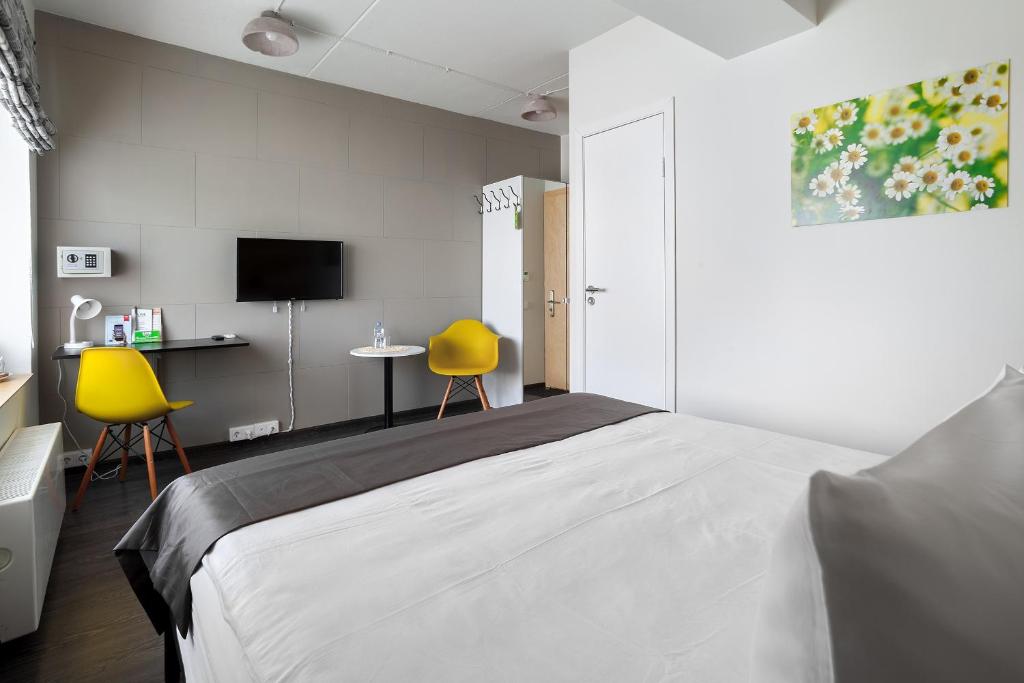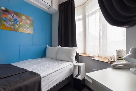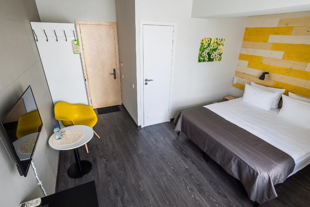 В 4 километрах находится железнодорожный вокзал, а дорога до аэропорта Кольцово займет меньше получаса. Отель разместился в современном шестиэтажном здании, расположенном в жилом районе города среди многоэтажной застройки. Внутри — стильный интерьер, выдержанный в светлой серо-белой цветовой гамме с добавлением ярких цветовых акцентов. Здесь максимально естественно сочетается современное техническое оснащение, натуральные отделочные материалы, продуманное освещение и природные мотивы. В номерах Double и Twin установлена душевая кабина, есть плазменный телевизор и кондиционер. В отеле организована общая кухня, где можно приготовить или разогреть еду, выпить чашечку кофе или чая. Отдыхающим доступна аренда бытового инвентаря: утюга и гладильной доски, ионизатора и увлажнителя. Возле отеля на закрытой территории, оснащенной камерами видеонаблюдения, организована небольшая парковка.