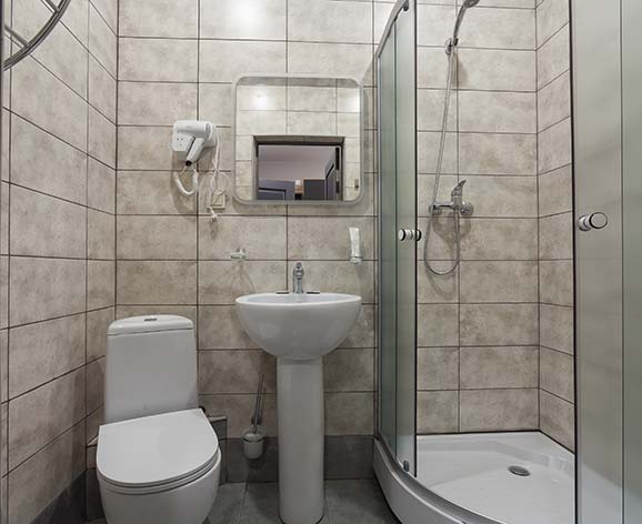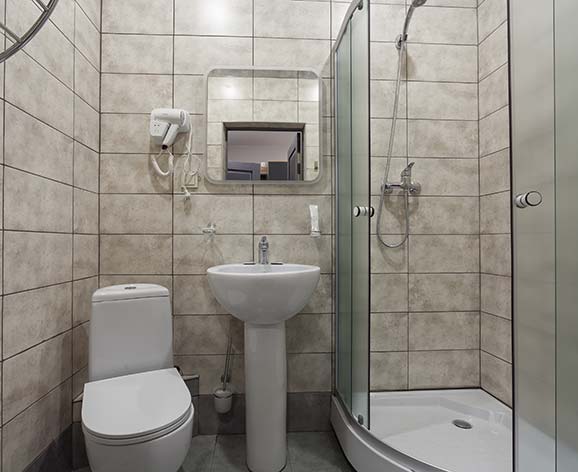 Санузел: с душевой кабиной, туалетные принадлежности, фен