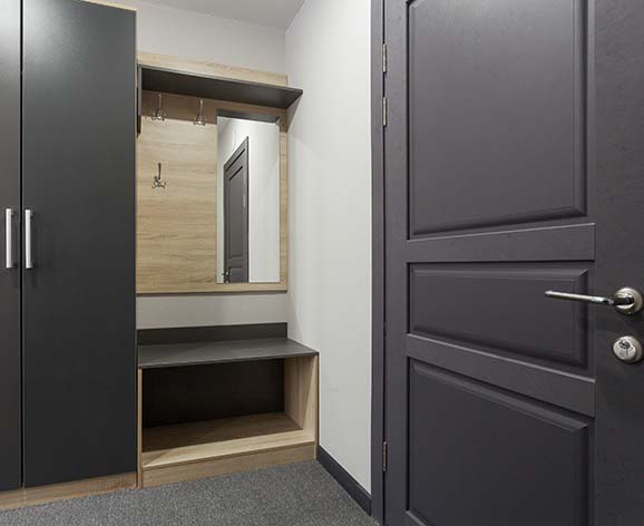 В номере: вешалка, зеркало, кровать двухъярусная, прикроватная тумбочка, стол, компьютер, кулер, мини-холодильник, телевизор, чайная станция, электрочайник