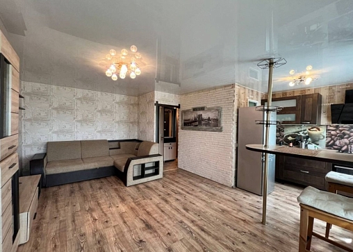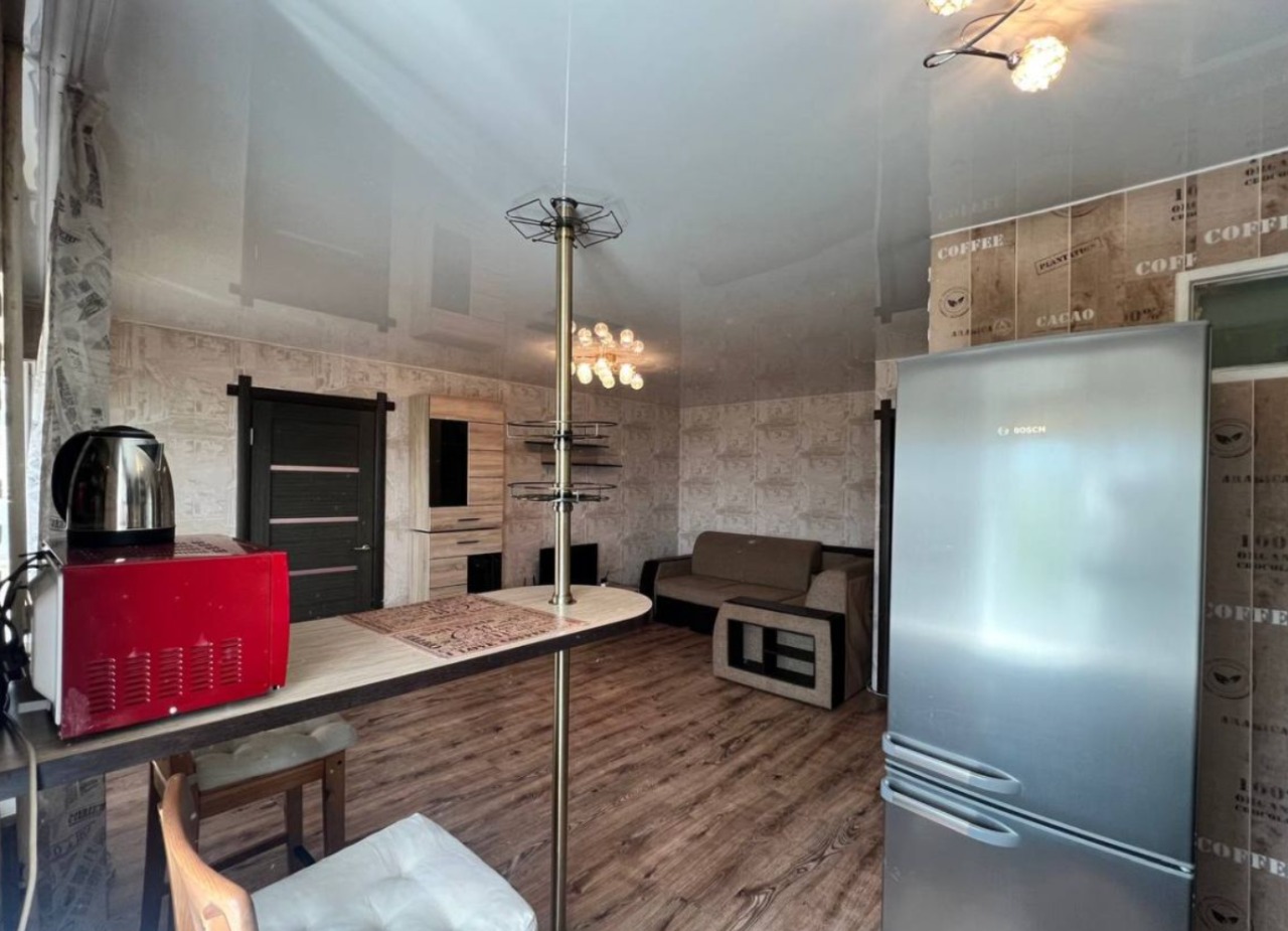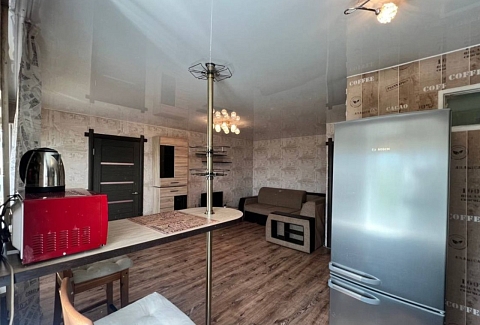 В номере: вешалка, диван, зеркало, кровать двуспальная, стол, стулья, шкаф, микроволновая печь, плита газовая, стиральная машина, телевизор ЖК, холодильник, чайный набор посуды, электрочайник