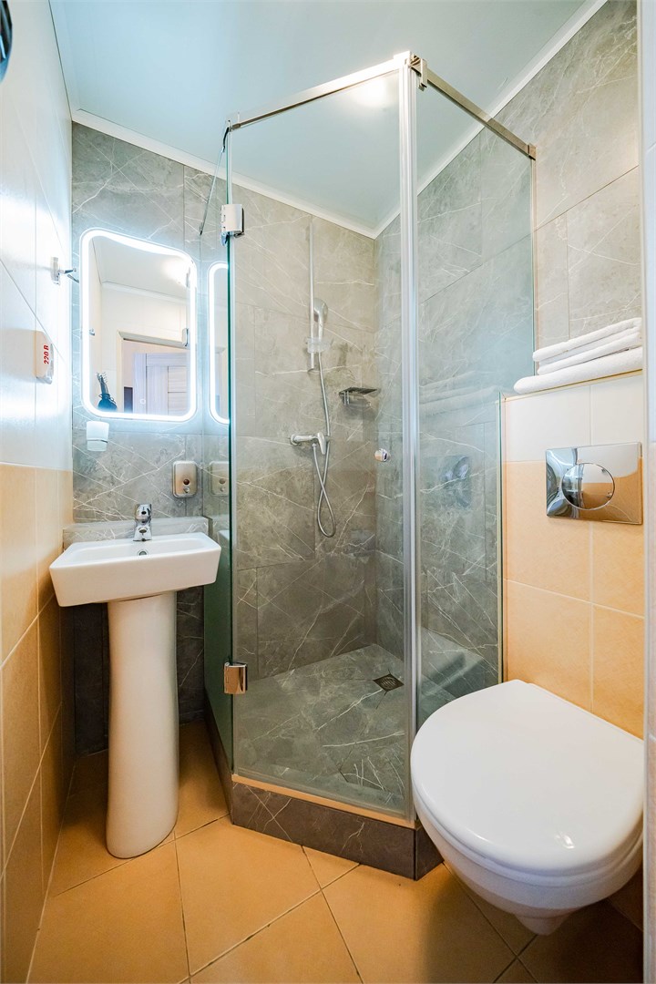 Санузел: с душевой кабиной, туалетные принадлежности, фен