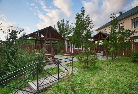 Поездом до ж/д вокзала г. Екатеринбурга, далее на автобусе №120 до остановки «Косулино», далее пройти 160 м до отеля.