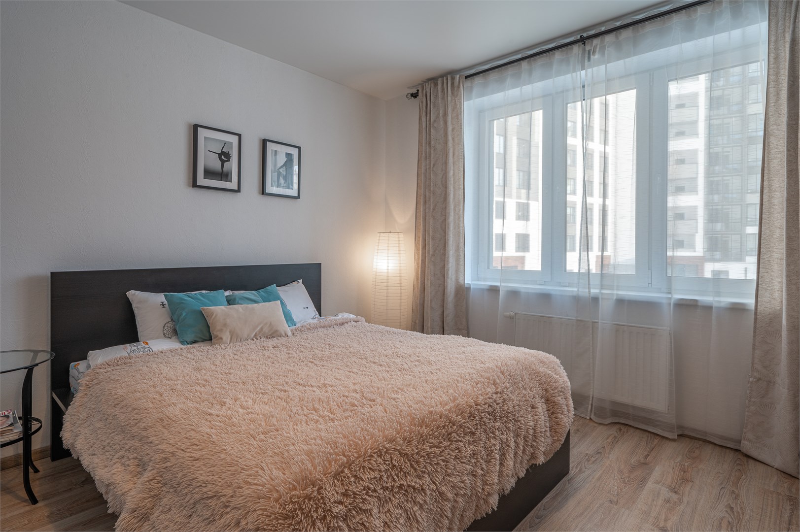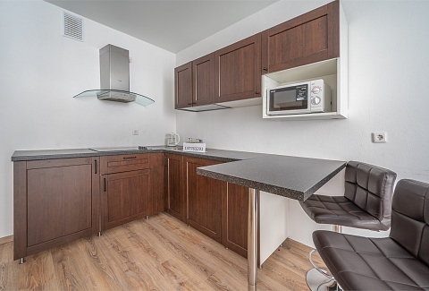 В номере: диван раскладной, зеркало, кровать двуспальная, прикроватные тумбочки, стол, стулья, шкаф, гладильная доска, микроволновая печь, набор посуды, стиральная машина, телевизор, утюг, холодильник, чайник