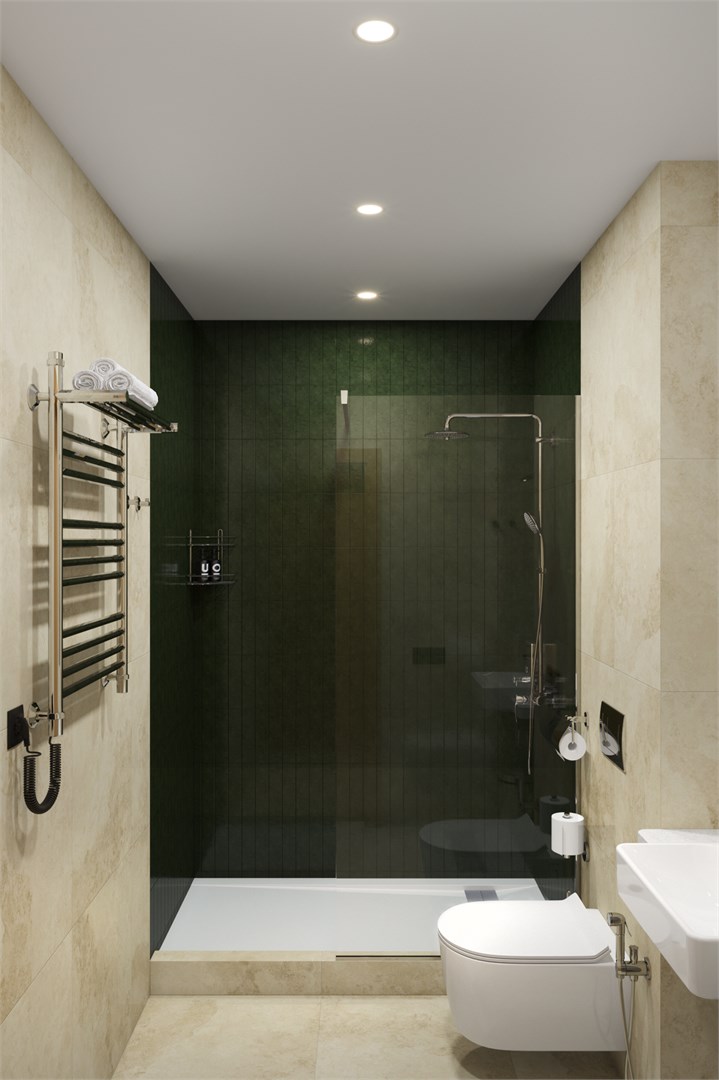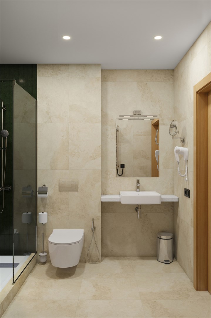 Санузел: с душевой кабиной, туалетные принадлежности, фен