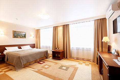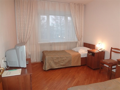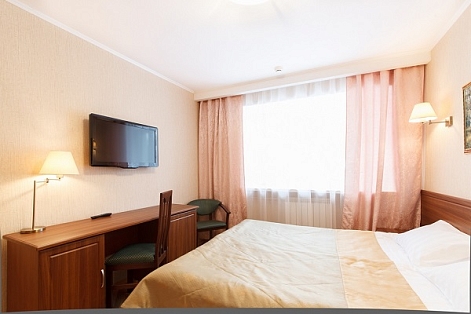 За 10 мин можно добраться от гостиницы до ж/д вокзала и за 30 минут - до аэропорта.Отель представляет собой отдельно стоящее 6-этажное здание с лифтом. Он располагает просторными светлыми номерами, большинство из которых оснащено кондиционерами. Для проживания гостей предлагаются номера категории Стандарт, Студия и 2-комнатные Люксы. Также есть блочные 1-2-местные номера. В распоряжении гостей рабочий стол, телевизор и собственная или общая (на блок) ванная комната с туалетно-косметическими принадлежностями.В кафе, оформленном натуральным камнем, подают блюда русской кухни и легкий завтрак. Рядом с отелем расположено несколько баров и кафе.К услугам гостей бесплатный wi-fi на территории всего отеля, салон красоты, сувенирный магазин, камера хранения, бесплатная парковка, заказ авиабилетов и другие услуги.Небольшой комфортный конференц-зал вместимостью до 30 человек оснащен оборудованием, необходимым для проведения различных деловых мероприятий.